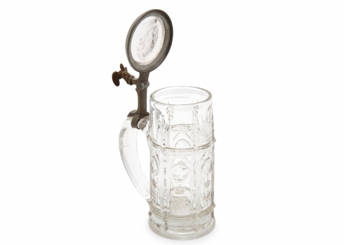 כוס שיכר (בירה) עתיקה עשויה זכוכית ופיוטר