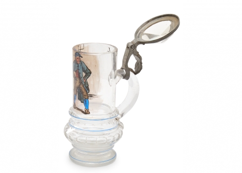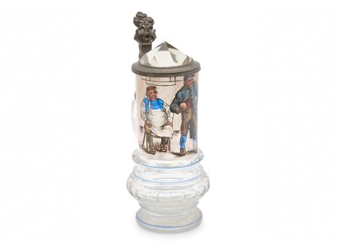 כוס בירה/שיכר עתיקה (Beer tankard או Beer stein) גרמנית, עשויה זכוכית מרובבת