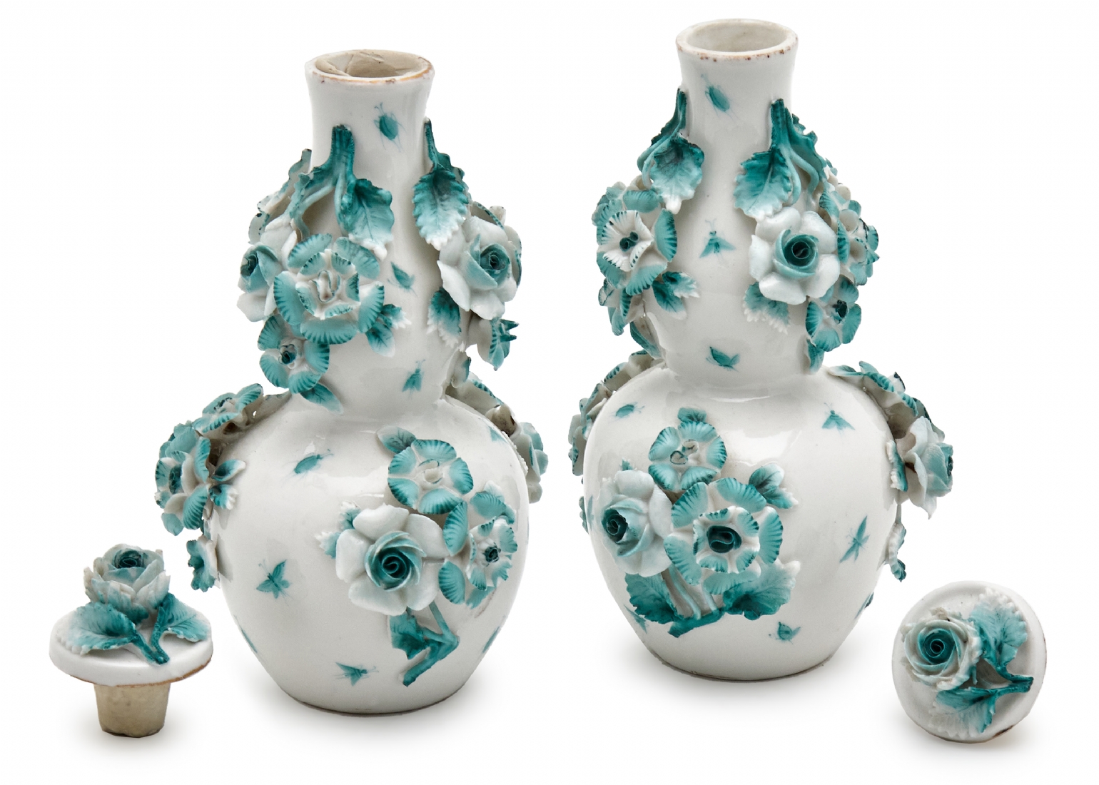 מעוטרים בפרחי פורצלן מפוסלים וצבועים ביד, חתומים