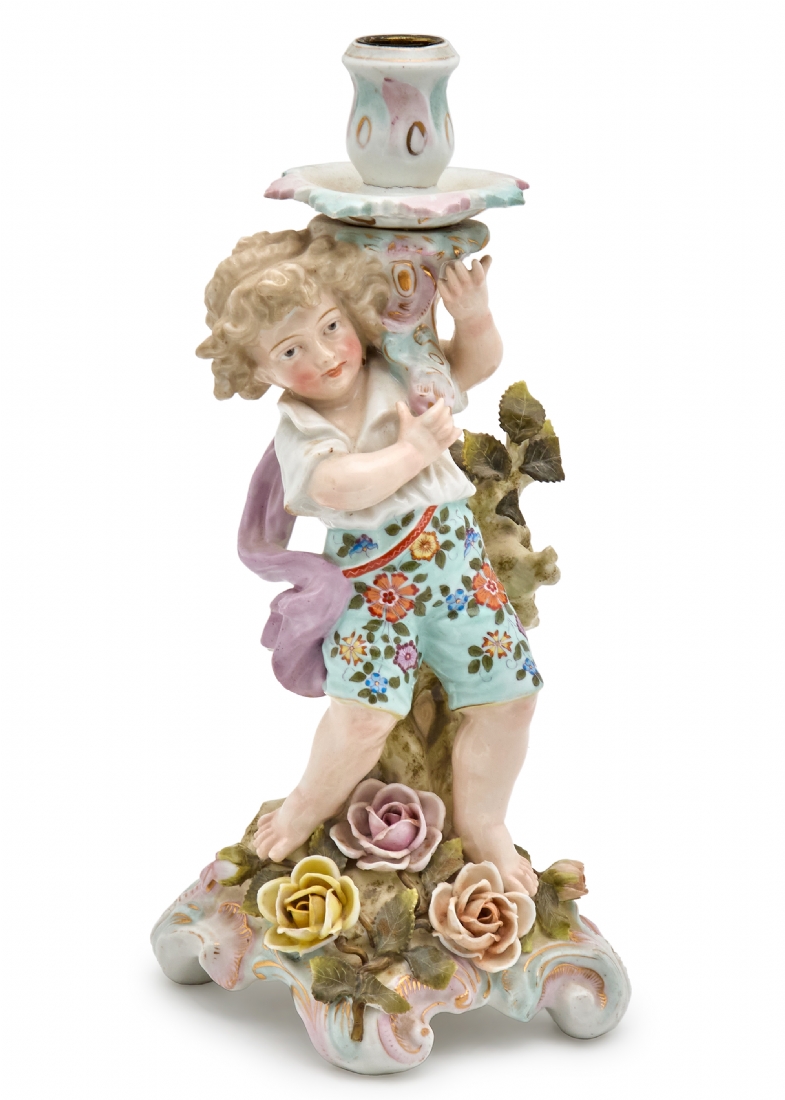 פמוט פורצלן שולחני עתיק המאה ה-19 או תחילת המאה ה-20, מתוצרת SITZENDORF, גרמניה