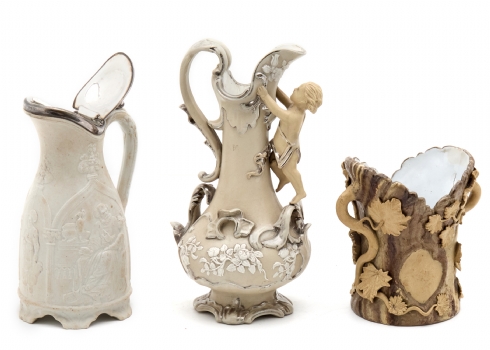 שלושה חפצים עתיקים עשויים חרס, מעוטרים וחתומים