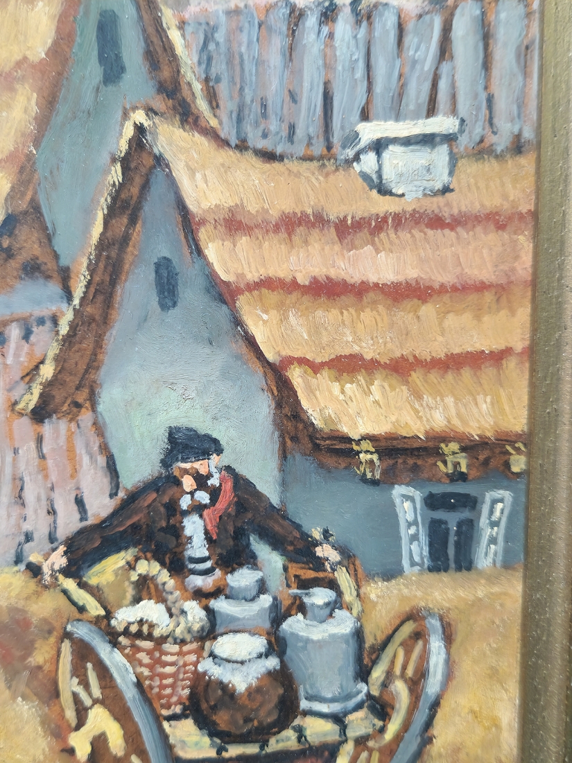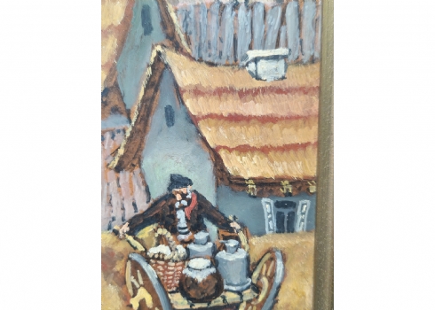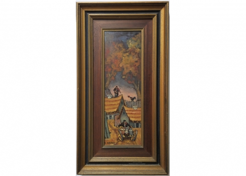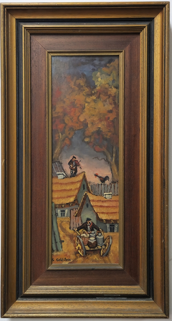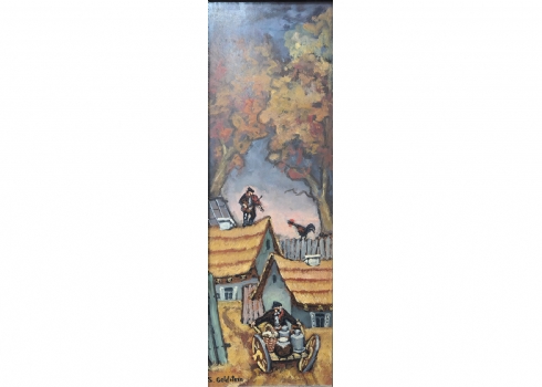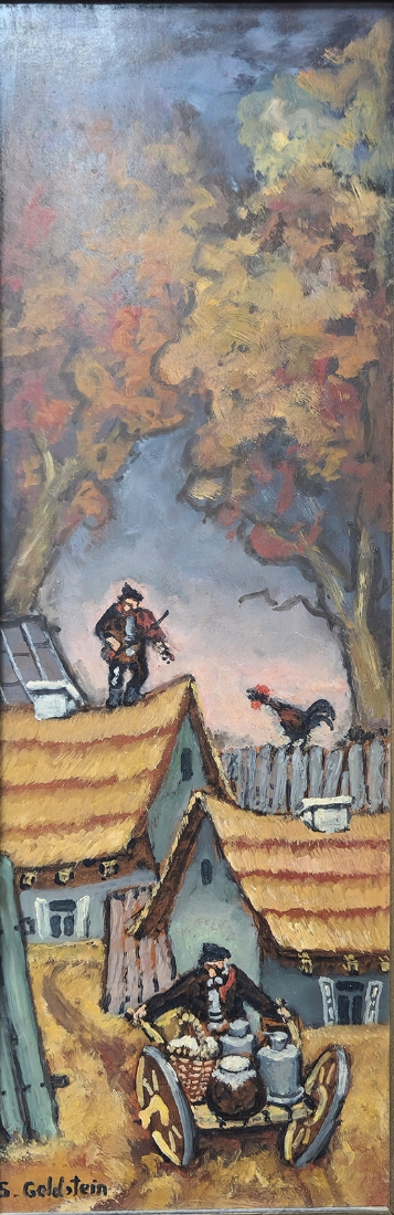 שמואל גולדשטיין - ''כנר על הגג' - ציור שמן על לוח חתום