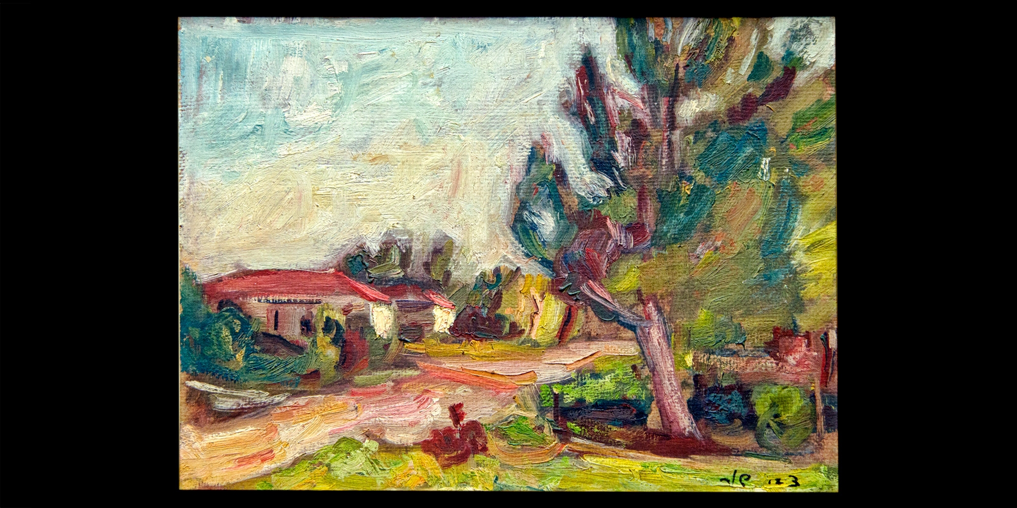 צבי שור - 'נוף פתח תקווה' - שמן על בד, חתום, מידות: 33X47 ס"מ.