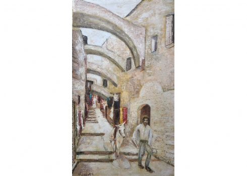 יעקוב ווסובר (Jacob Vassover) - 'סמטאות בצהרי היום', שמן על בד חתום