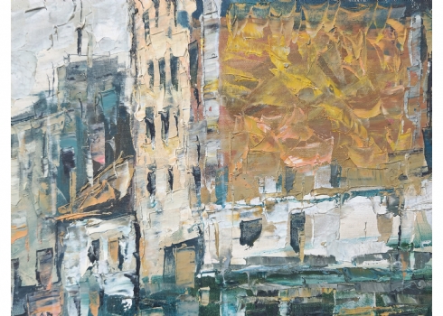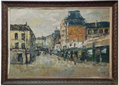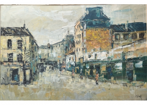'דמויות ברחוב' - שמן על בד, חתום