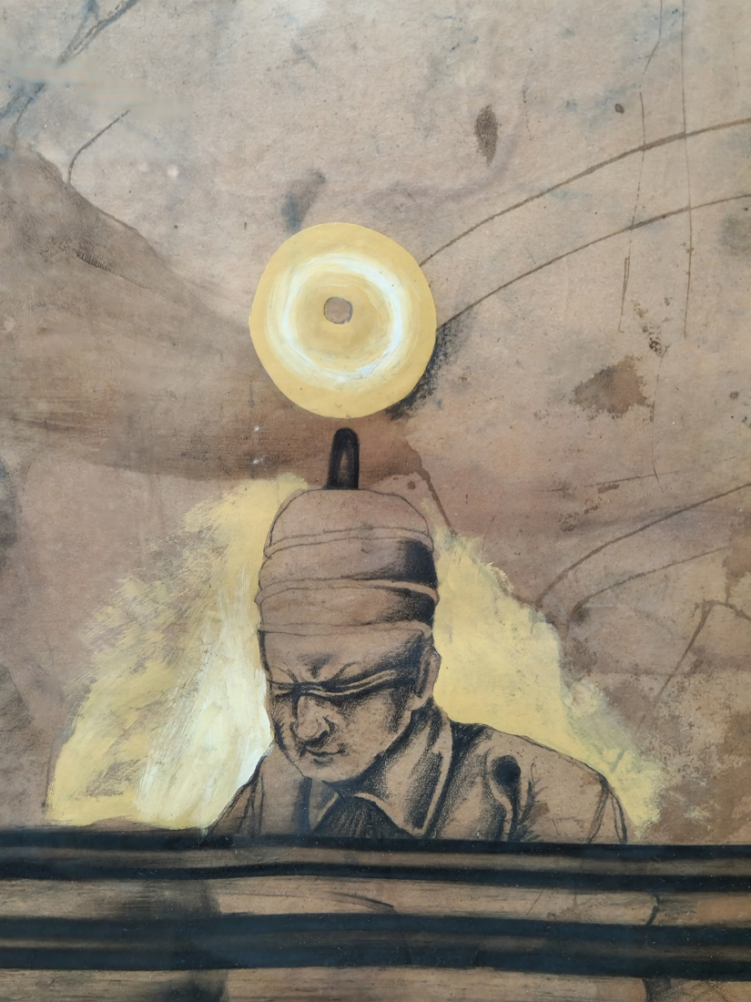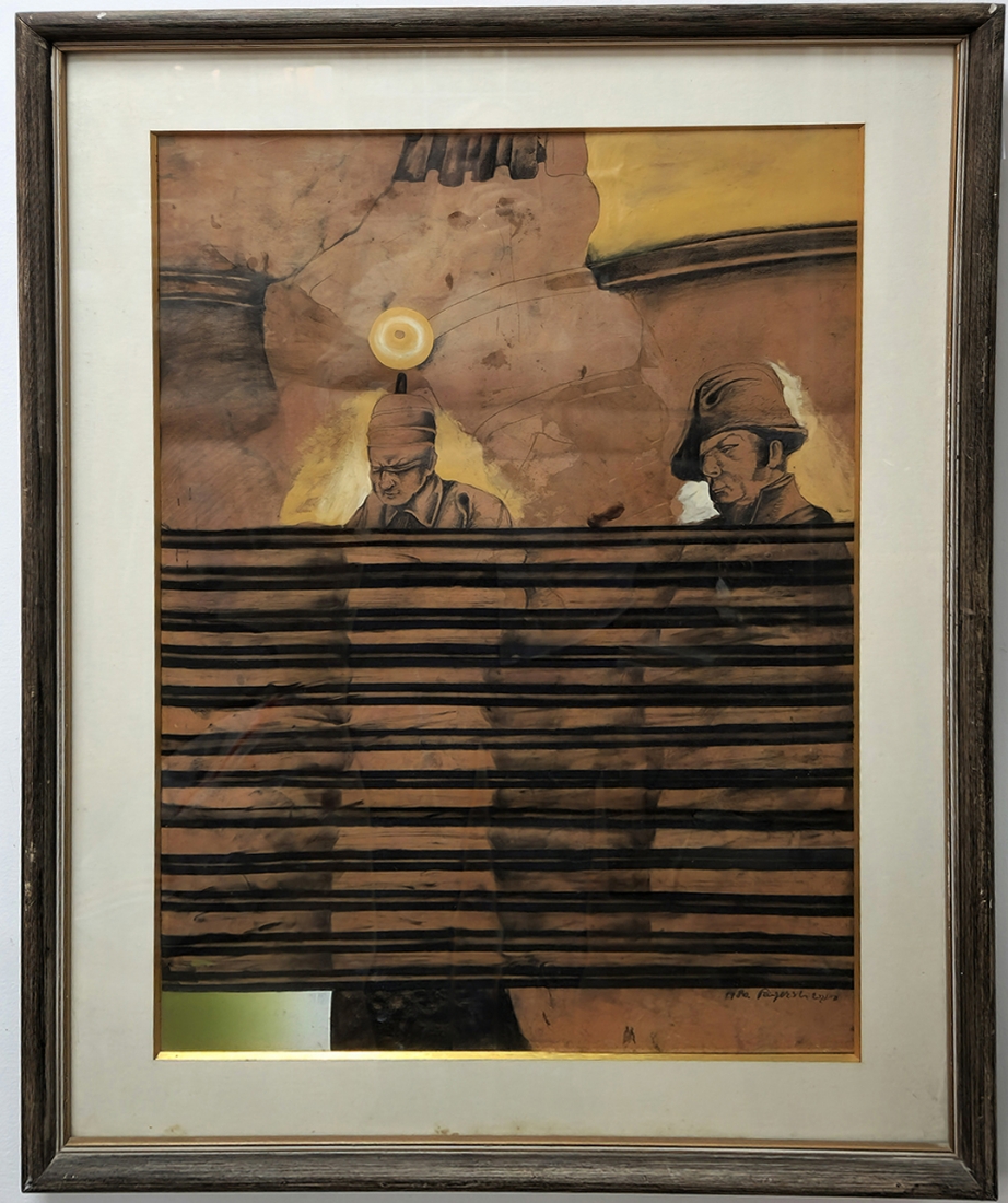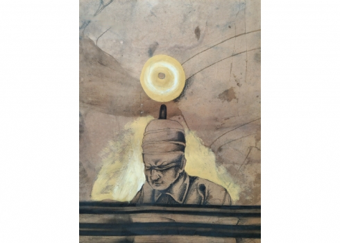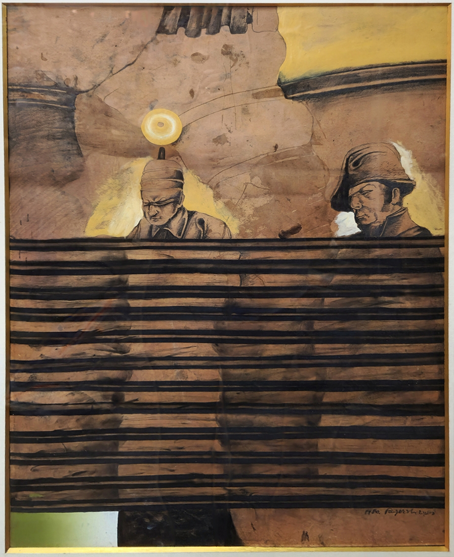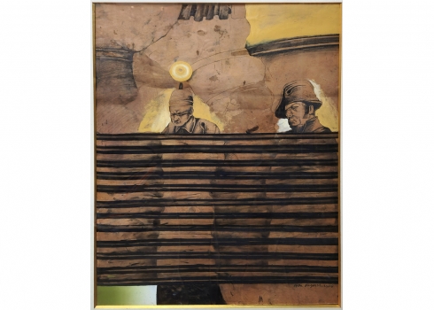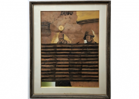 עודד פיינגרש (Oded Feingersh) - 'אדמירל ושבוי', טכניקה מעורבת על נייר, חתום