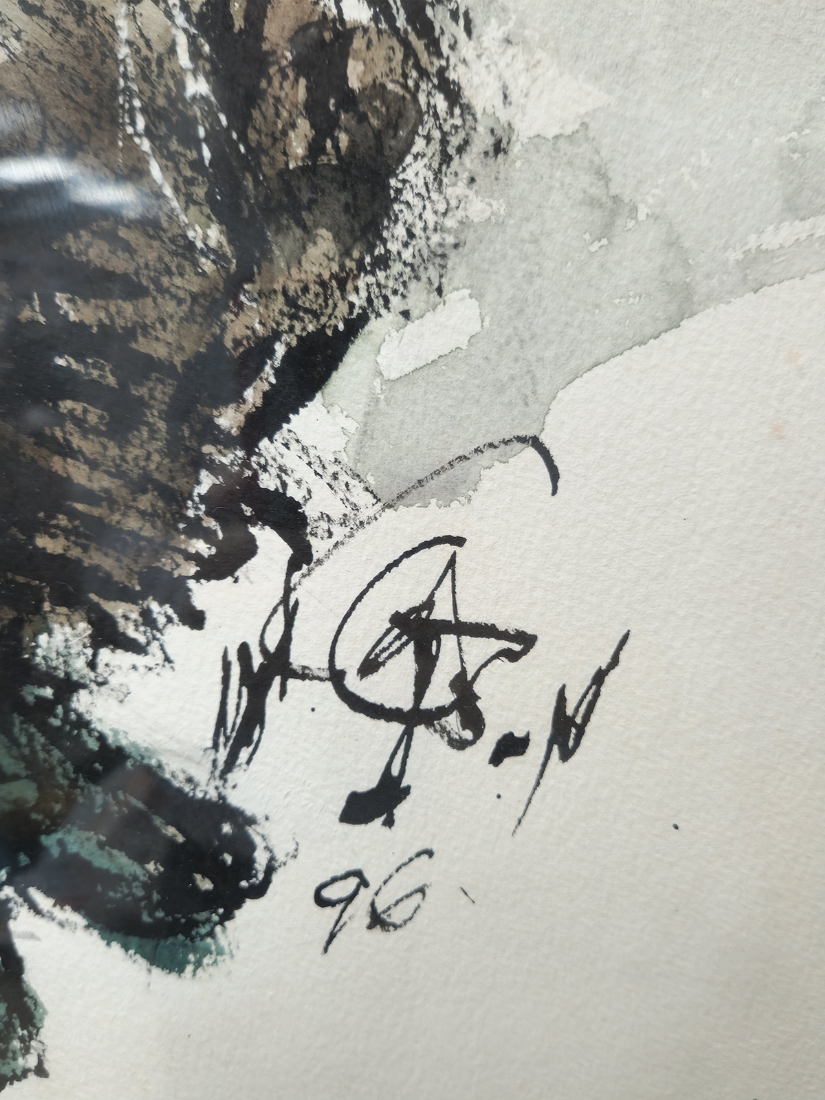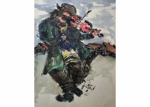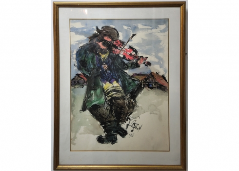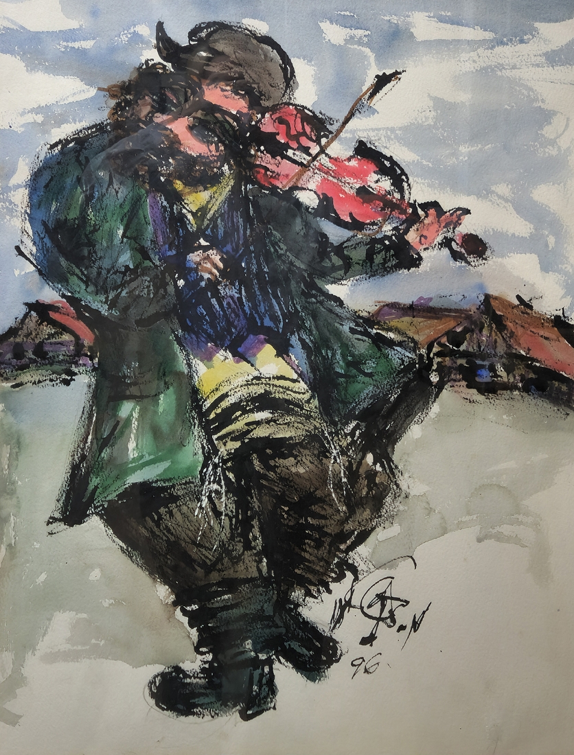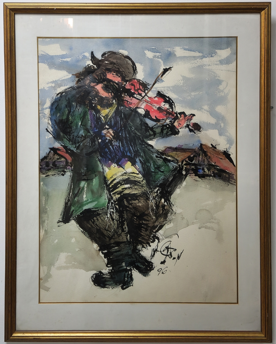 משה ברנשטיין (Moshe Bernstein) - 'כנר', אקוורל על נייר, חתום ומתוארך 1996