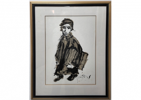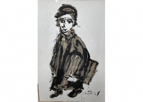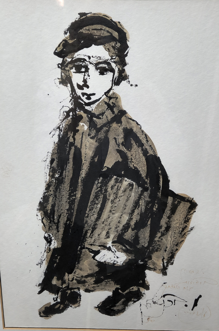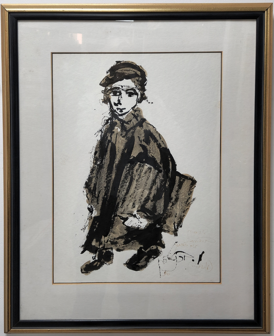 משה ברנשטיין (Moshe Bernstein) - 'תלמיד' אקוורל על נייר, חתום