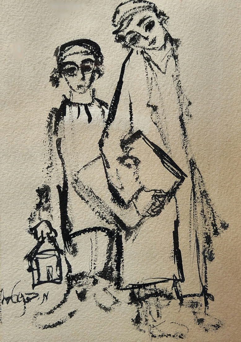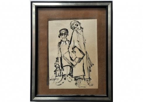 משה ברנשטיין (Moshe Bernstein) - 'שני נערים יהודיים', אקוורל על נייר חתום