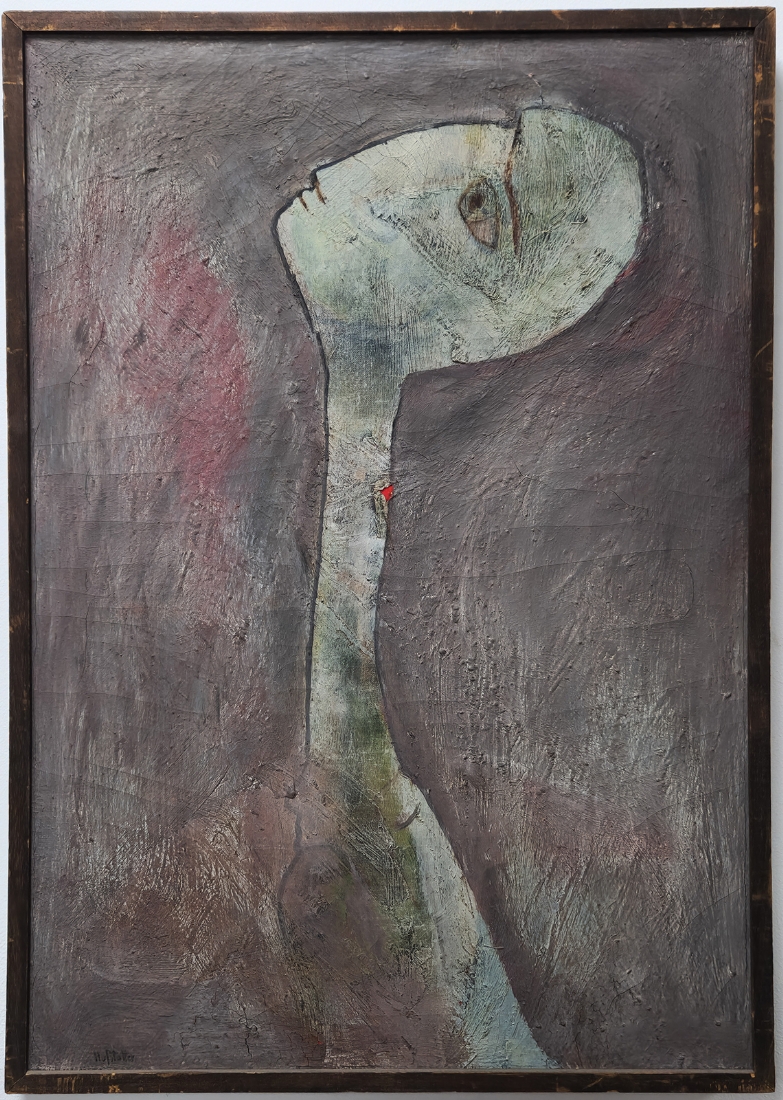 אוזיאש הופשטטר - 'נער אפור על סגול', שמן על בד חתום