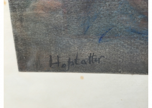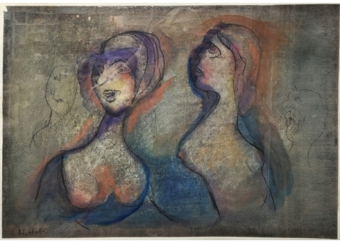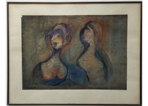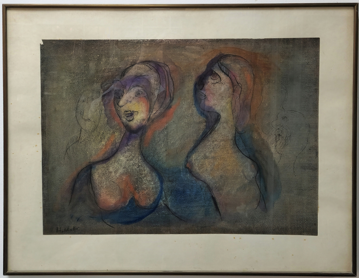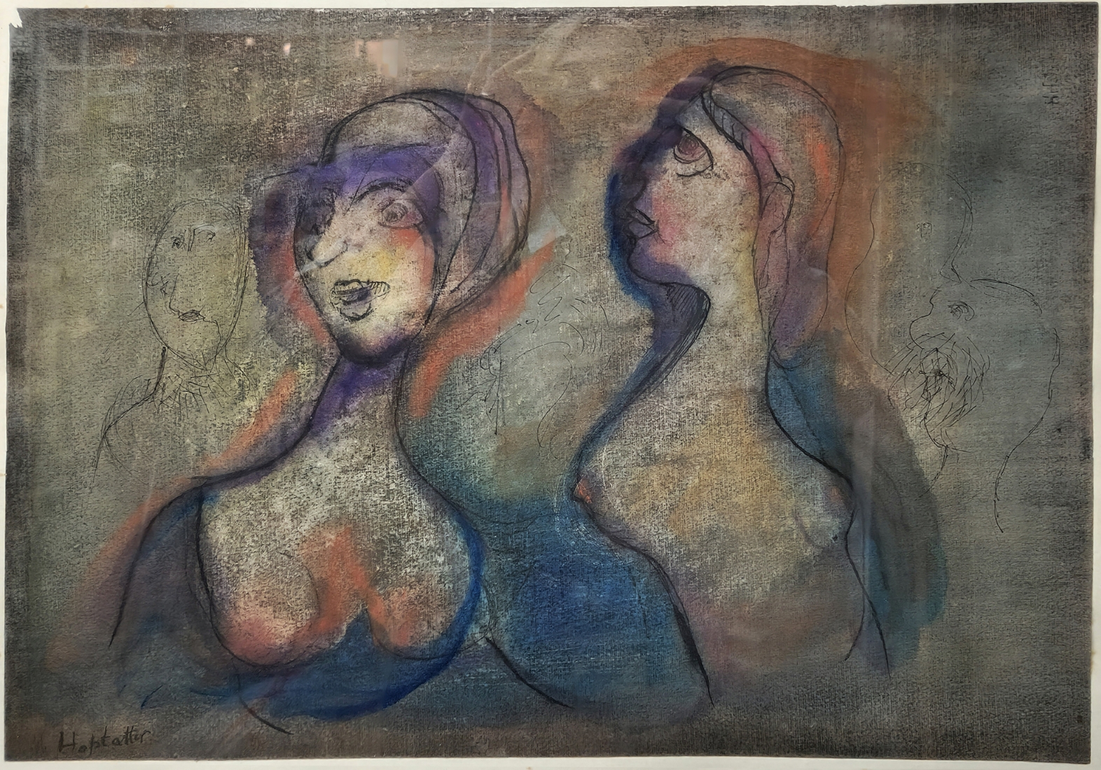 אוזיאש הופשטטר - 'חמש דמויות', טכניקה מעורבת על נייר, חתום