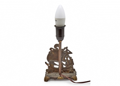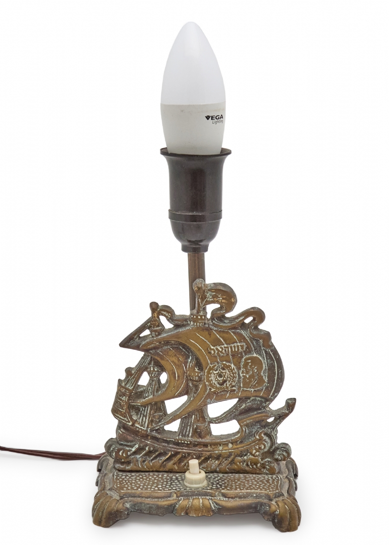 מנורת שולחן בסגנון ישרליאנה מפליז, עם דמות בנימין זאב הרצל