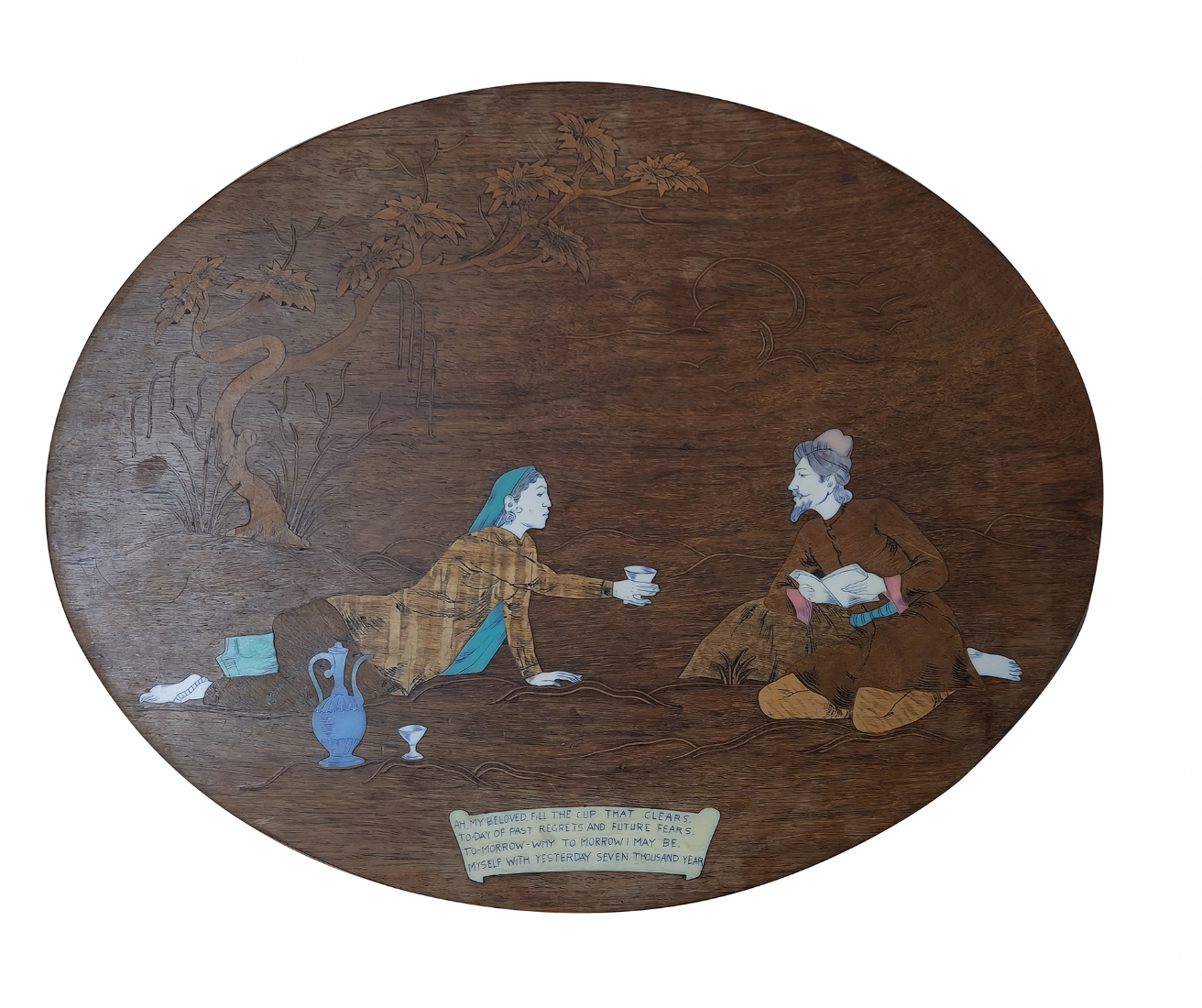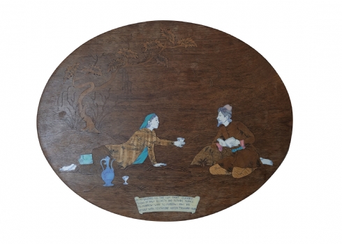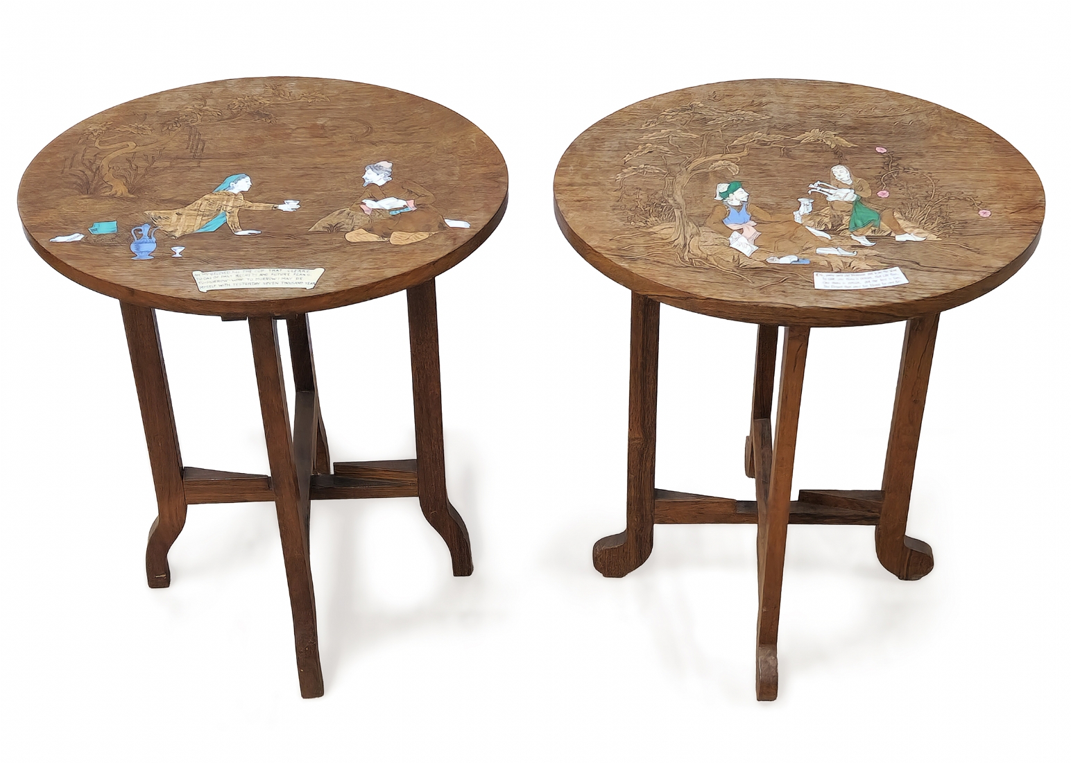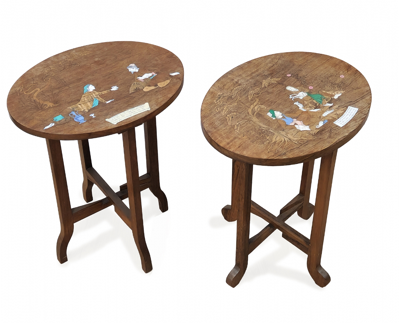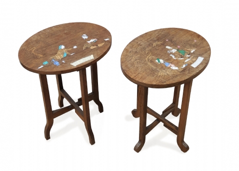זוג שולחנות נוי הודים עתיקים מעוטרים בעבודת שיבוץ
