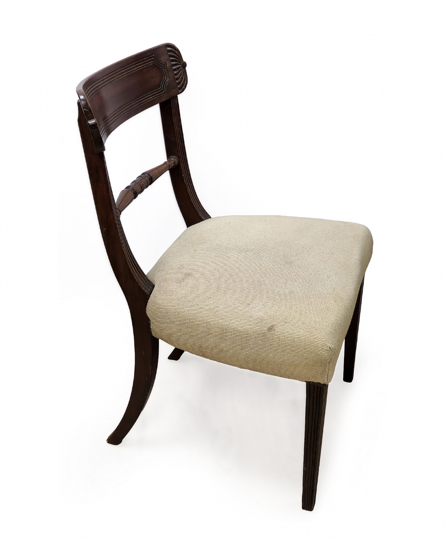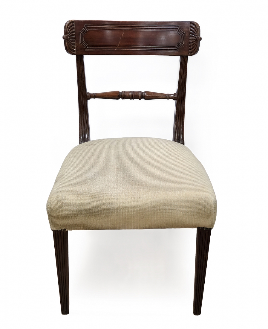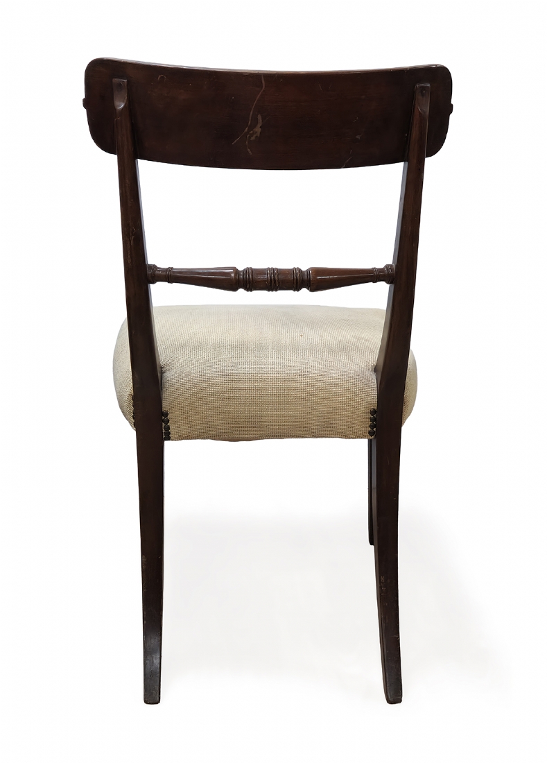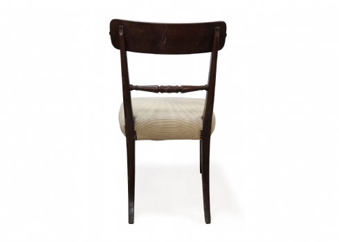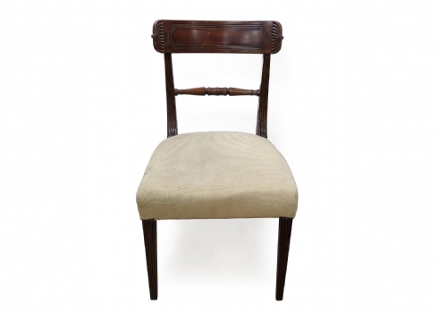 כיסא עץ בסגנון קלאסי עם גב מעוגל וריפוד בד בהיר