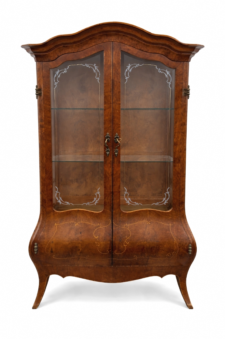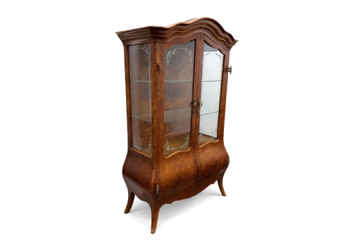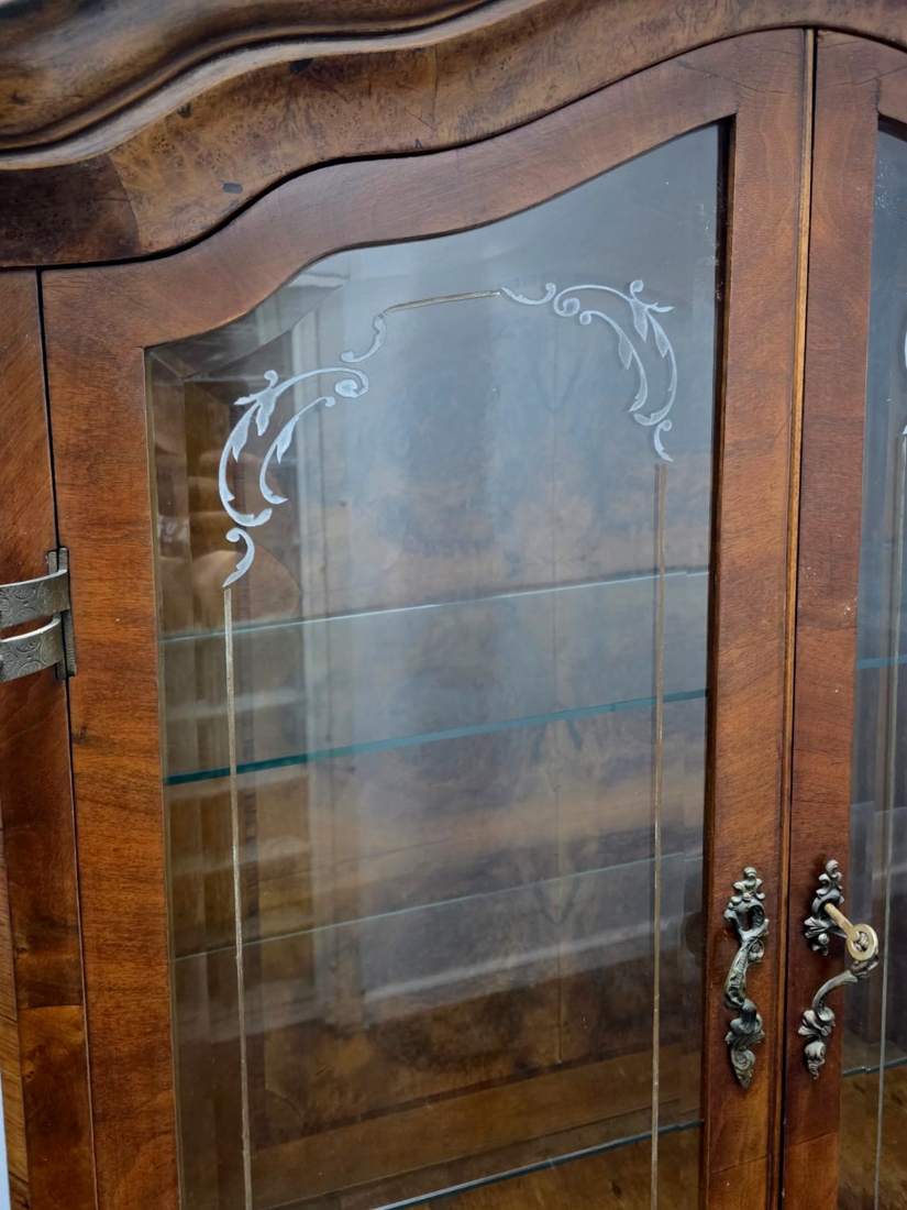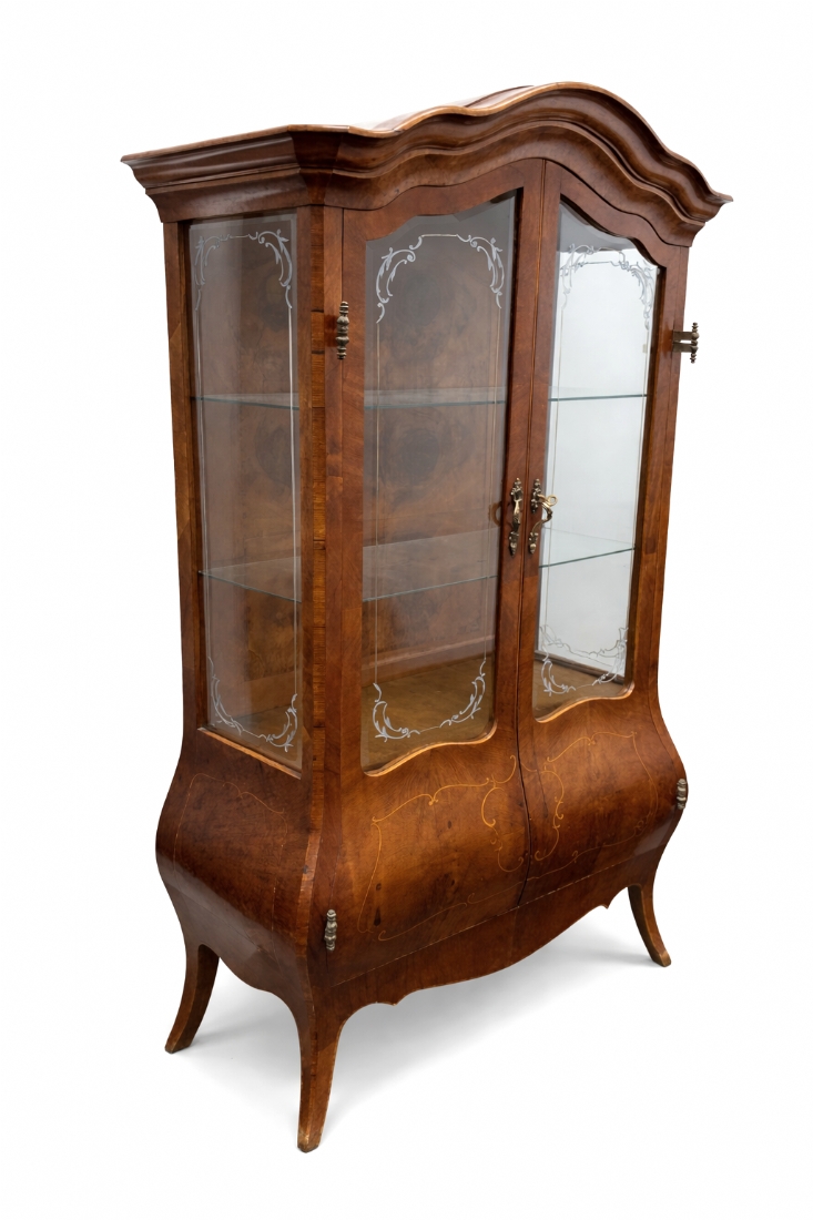 ויטרינה איטלקית מהודרת בסגנון בארוק עשויה עץ , חזית זכוכית ועיטורים קלאסיים