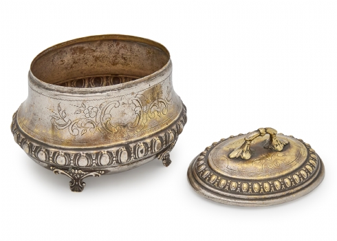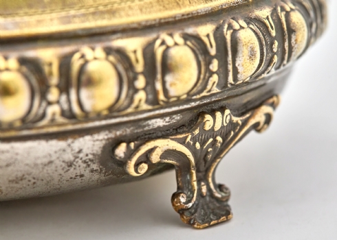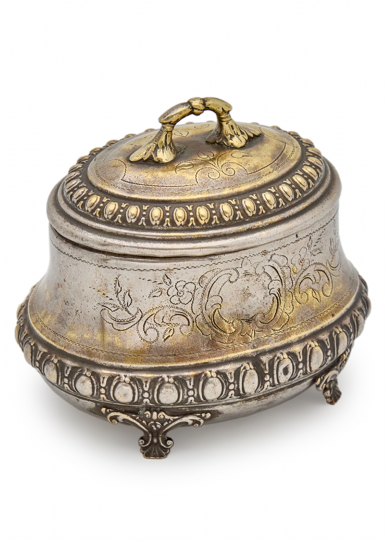 קופסת סוכר / אתרוג בעבודת יד עשוי פליז מצופה כסף