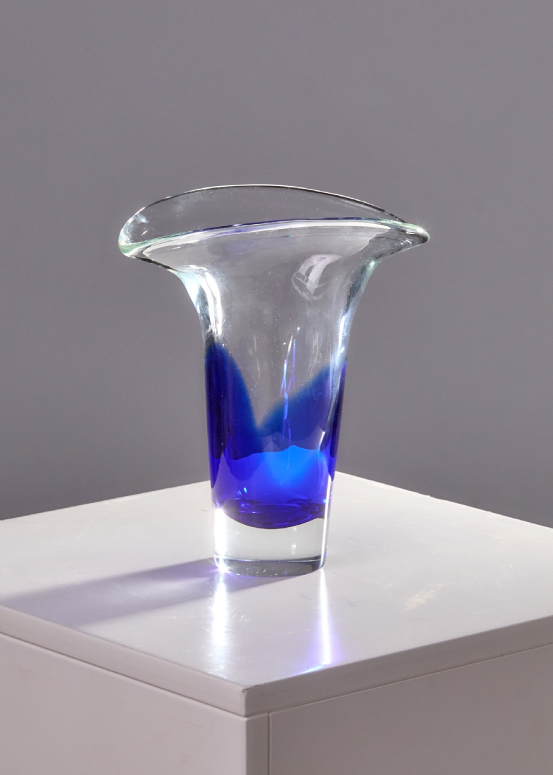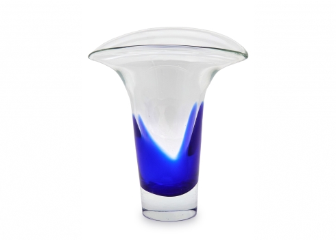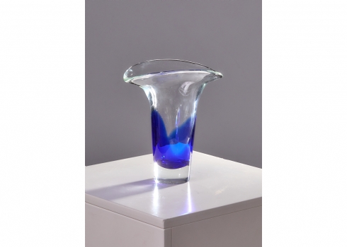 אגרטל קריסטל מורנו גדול ועדין בגווני כחול ושקוף