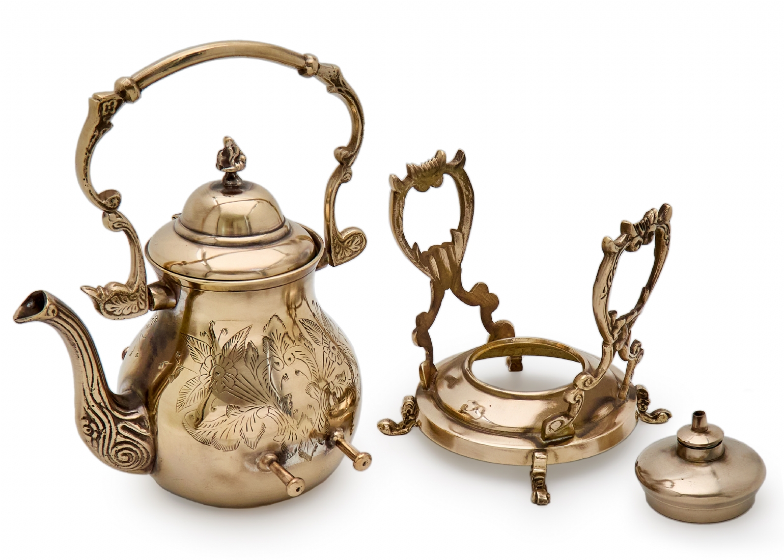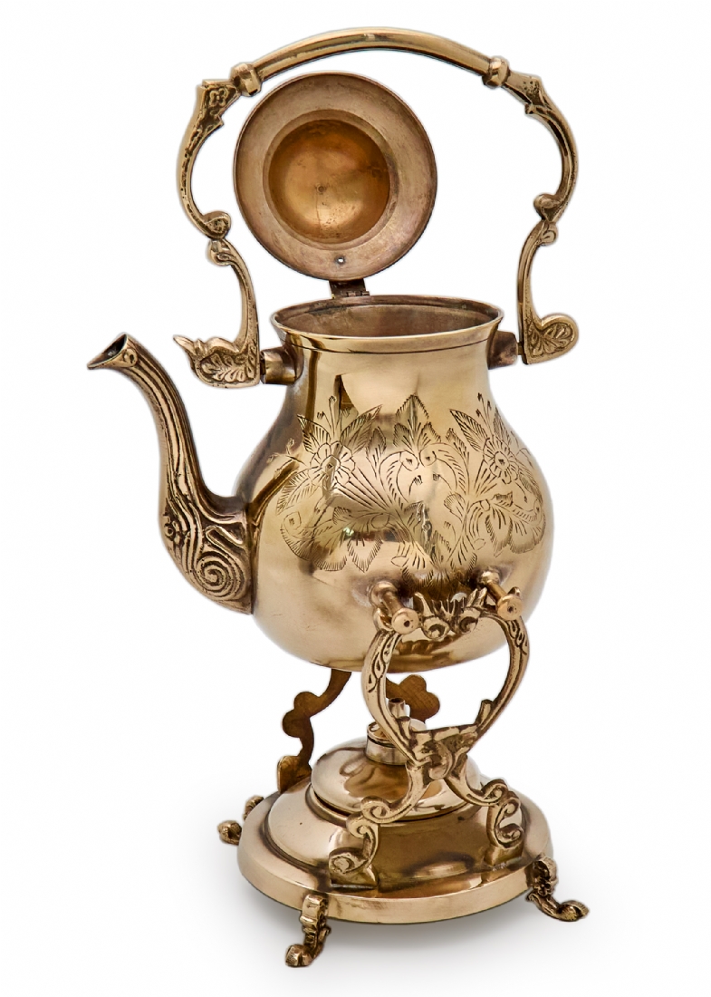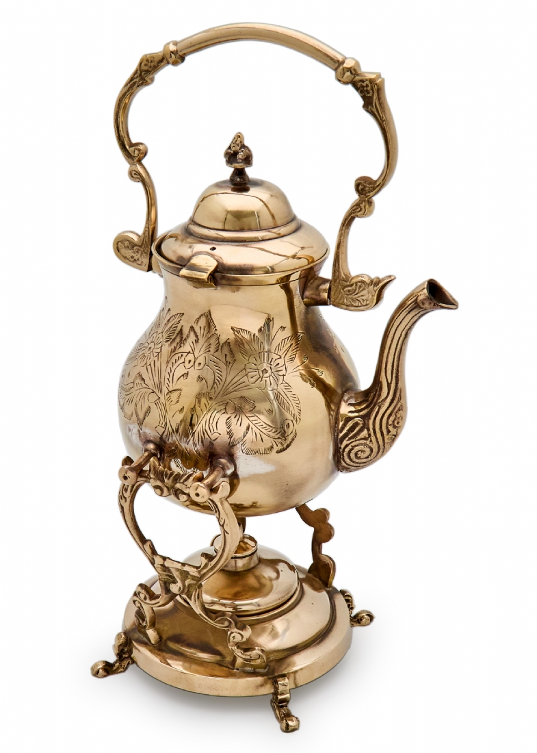 מי-חם דקורטיבי עשוי ממתכת חרוטה ומצופה כסף