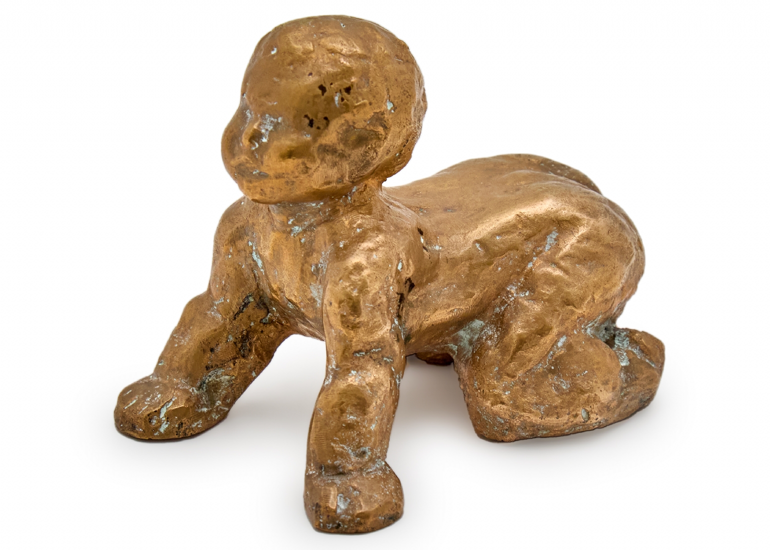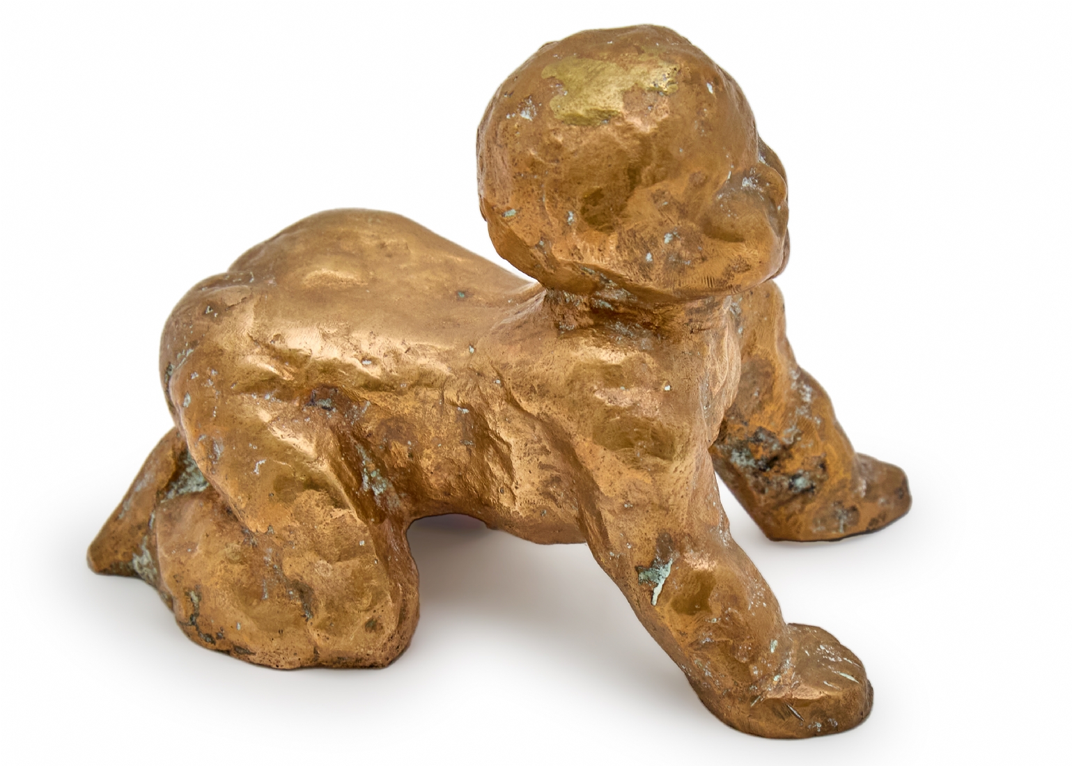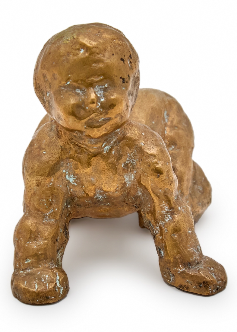 פסל ברונזה בדמות תינוק זוחל, על פי יצירה של ויליאם זוראך (William Zorach)