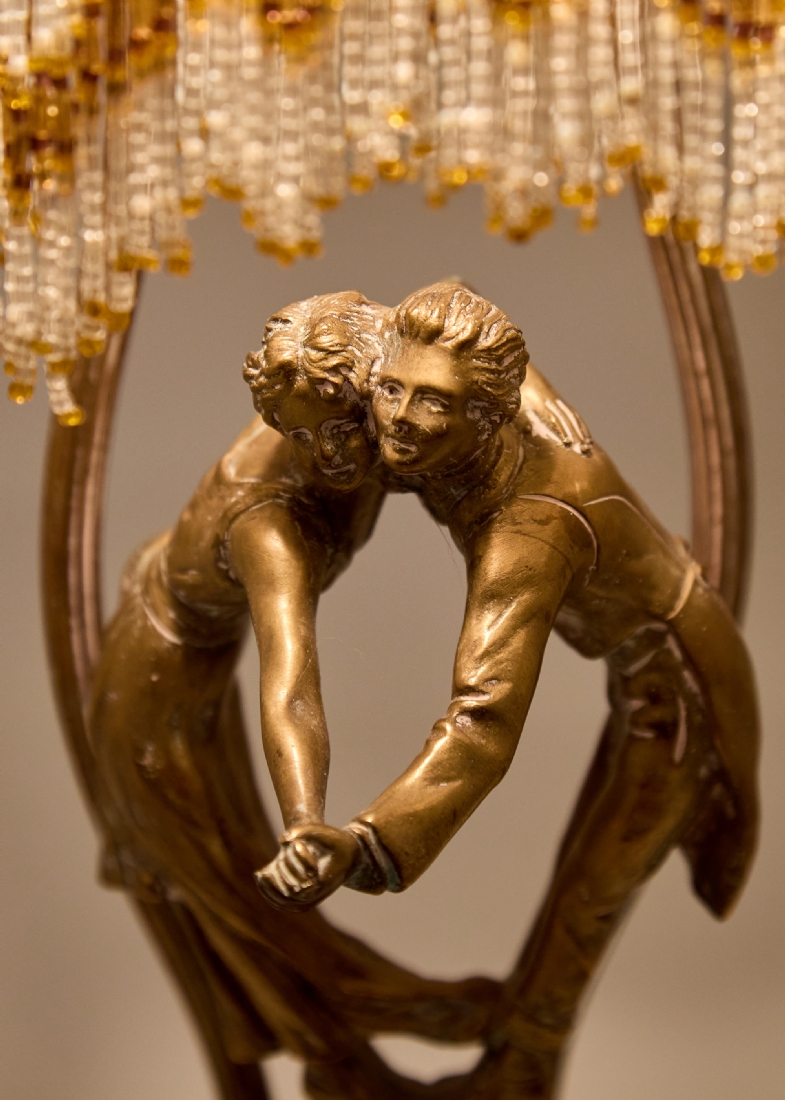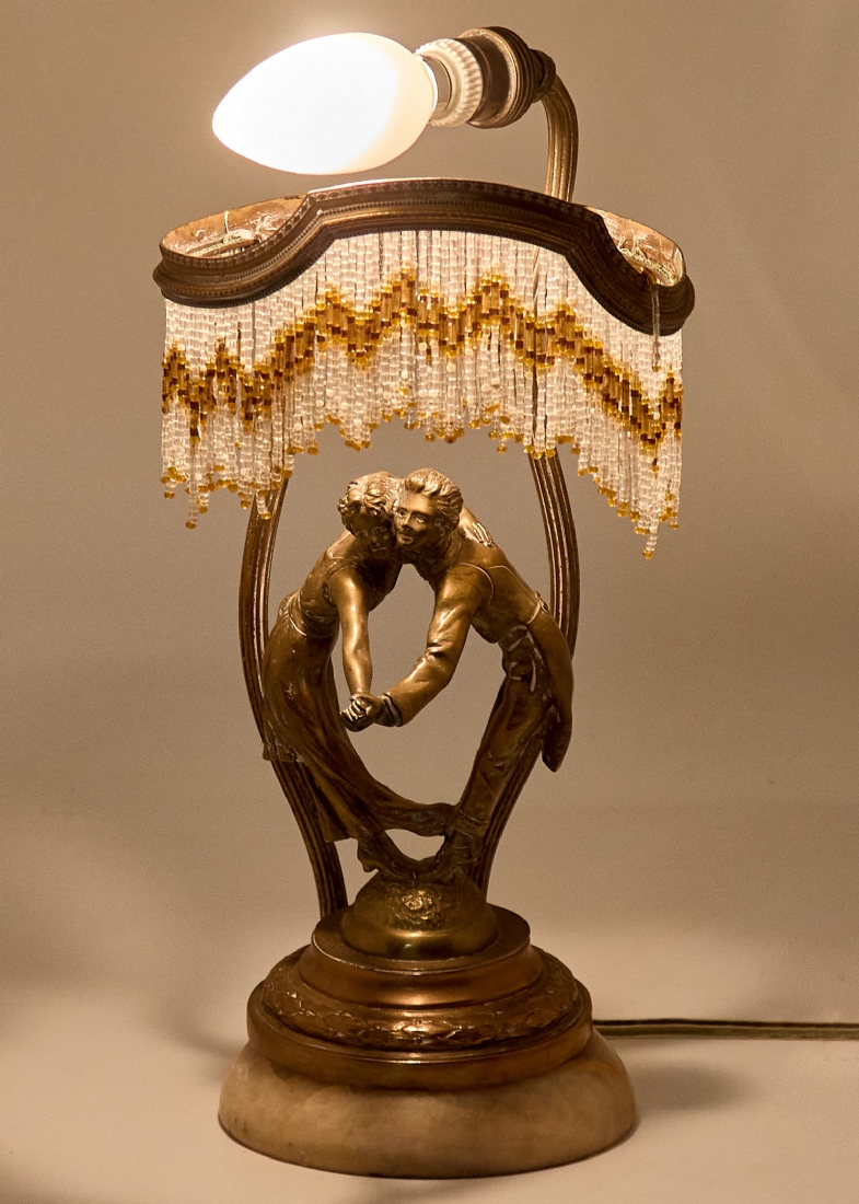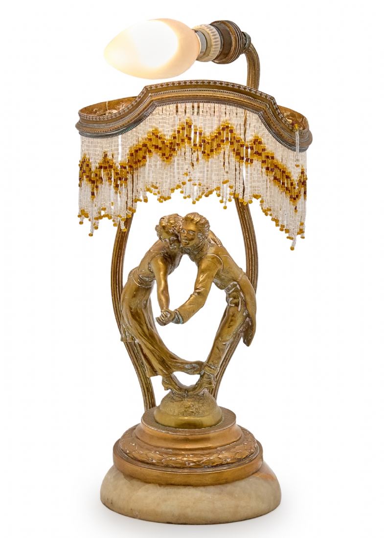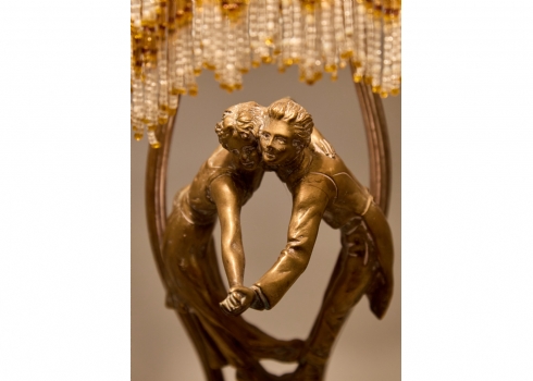 מנורת שולחן פיגורטיבית של זוג רוקד עשויה ברונזה על בסיס שיש