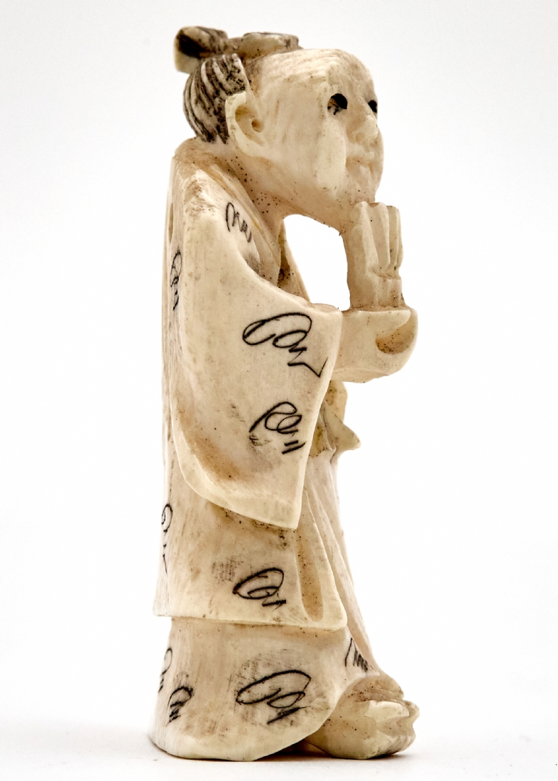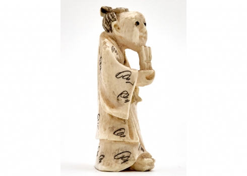נצוקי / נטסקה מגולף בעבודת יד בחומר יוקרתי לבן, חתום