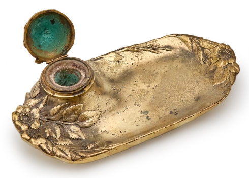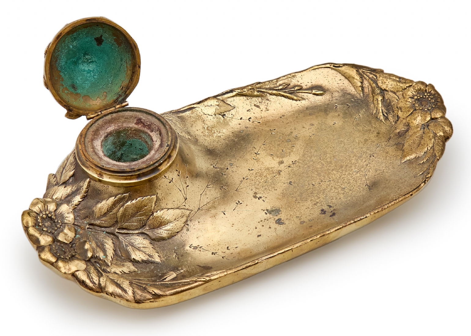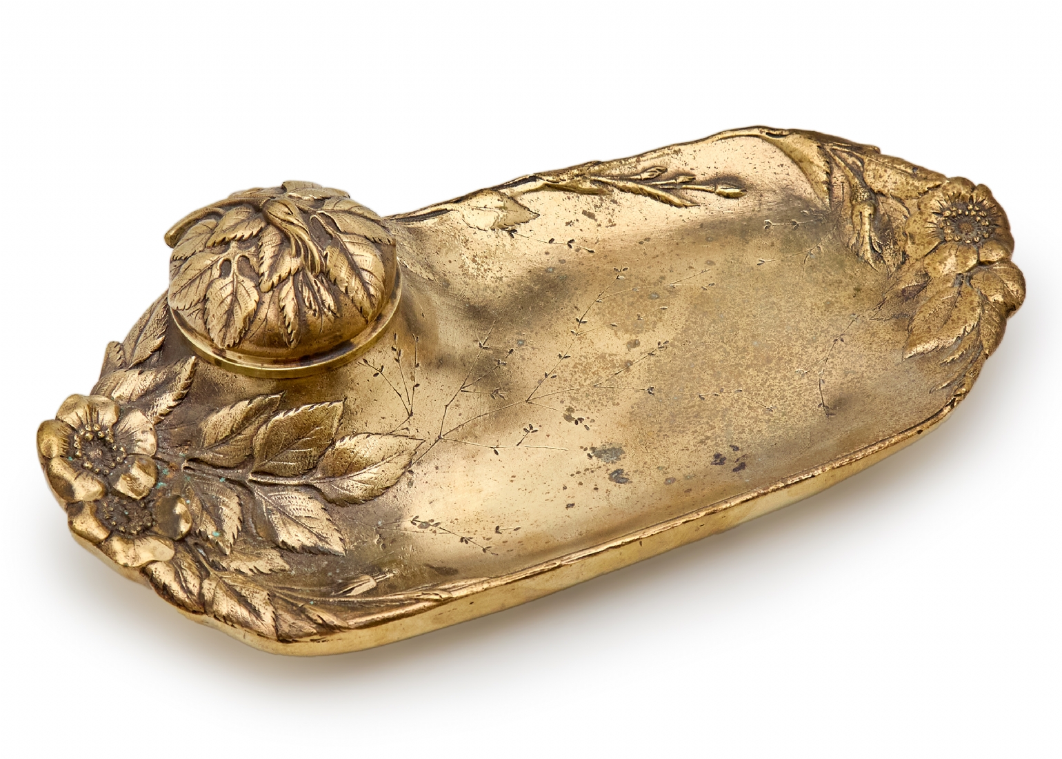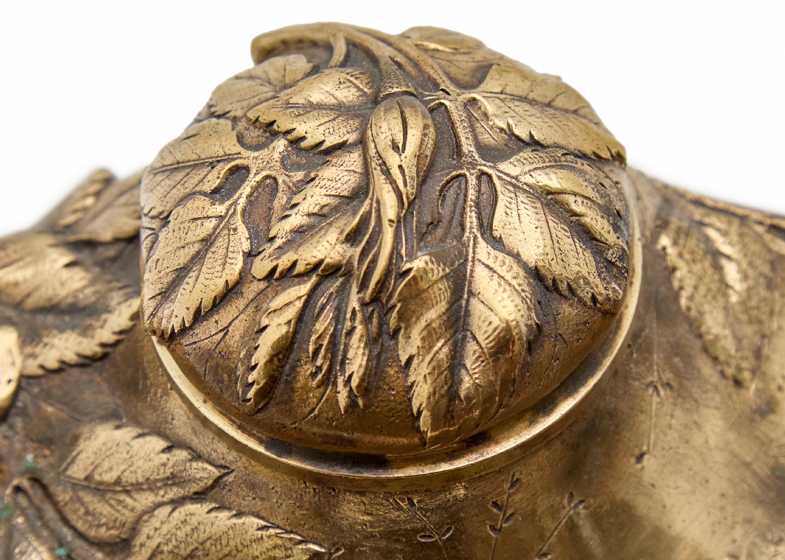 כסת דיו צרפתית מרשימה עשויה ברונזה ומעוטרת בעיטורים צמחיים