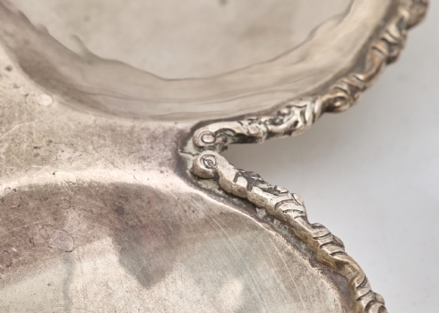 קנקן כסף אמריקאי לשתיה קרה קנקן כסף אמריקאי ישן למים קרים מתוצרת: 'POOLE' עשוי כסף 'סטרלינג' (Sterling) כלי אמריקאי עתיק מפואר ומרשים, מתוצרת: 'BARBOUR SILVER CO', עשוי מתכת מצופה כסף אגרטל ישן ואיכותי במיוחד עשוי קריסטל מלוטש ביד ושפה עליונה עשויה כסף כלי עתיק למי ורדים (Rosewater Sprinkler) מהמאה ה-19 כפי הנראה הודי בסגנון מוגולי לוט של 7 מזלגות כסף גרמנים עתיקים, חתומים: '12', משקל כולל: 326 גרם קערת רחצה צרפתית עתיקה וגדולה סט כלי הגשה אנגלי עתיק (ויקטוריאני) מפואר מסוף המאה ה-19 להגשת קפה ותה כד פורצלן ארט נובו מעוטר כסף (Silver Overlay Porcelain) על רקע קובלט כחול כהה דקנטר גרמני ארט נובו עתיק, משנת 1900 בקירוב, מתוצרת: 'WMF' כלי כסף אנגלי, עשוי כסף סטרלינג, מתוצרת: 'Adie Brothers Ltd' בברמינגהם, חתום צלחת כסף פרסית עתיקה ויפה, חתומה לוט פרטי סכו"ם אנגלי ישן מתוצרת: 'Walker & Hall', עשויים מתכת מצופה כסף, חתומים כלי אנגלי ישן לרוטב (רוטביה), מתוצרת: 'Walker & Hall', עשוי מתכת מצופה כסף, חתום כלי הגשה ומכסה תואם, עשויים מתכת מצופים כסף, חתום כלי הגשה וכיבוד מרובע, עשוי מתכת מצופה כסף, חתום מיחם (סמובר) אמריקאי ישן ואיכותי מתוצרת 'Reed & Barton', חתום, עשוי מתכת מוכספת קופסא עתיקה מסוף המאה ה-19, עשויה מתכת  ומשובצת אבני חן טבעיות כד רוסי עתיק, מתחילת המאה העשרים, עשוי גוף קריסטל מלוטש בעבודת יד מיחם אנגלי עתיק (ויקטוריאני) מסוף המאה ה-19, עשוי פיוטר מצופה כסף סט של שלושה כלי כסף הודים (קשמיריים) עתיקים מהמאה ה-19 סט אנגלי עתיק (ויקטוריאני) להגשת דגים כלי מוכסף להגשה וכיבוד קנקן ארט דקו ישן לשתייה קרה קנקן מתוצרת: 'Mappin & Webb' שני כלי כסף עתיקים כף הגשה אוסטרית עתיקה כלי הגשה ישן, עשוי נחושת מצופה כסף כלי מוכסף ומעמד תואם סלסלה עתיקה עשויה פליז מצופה כסף