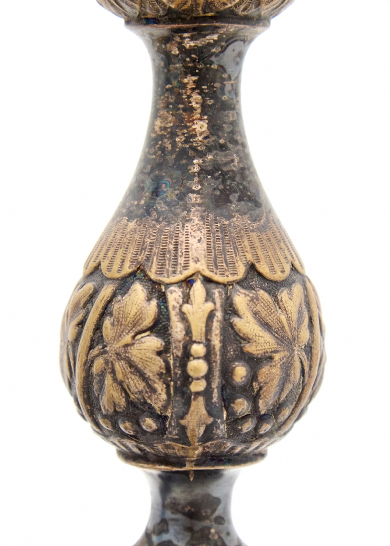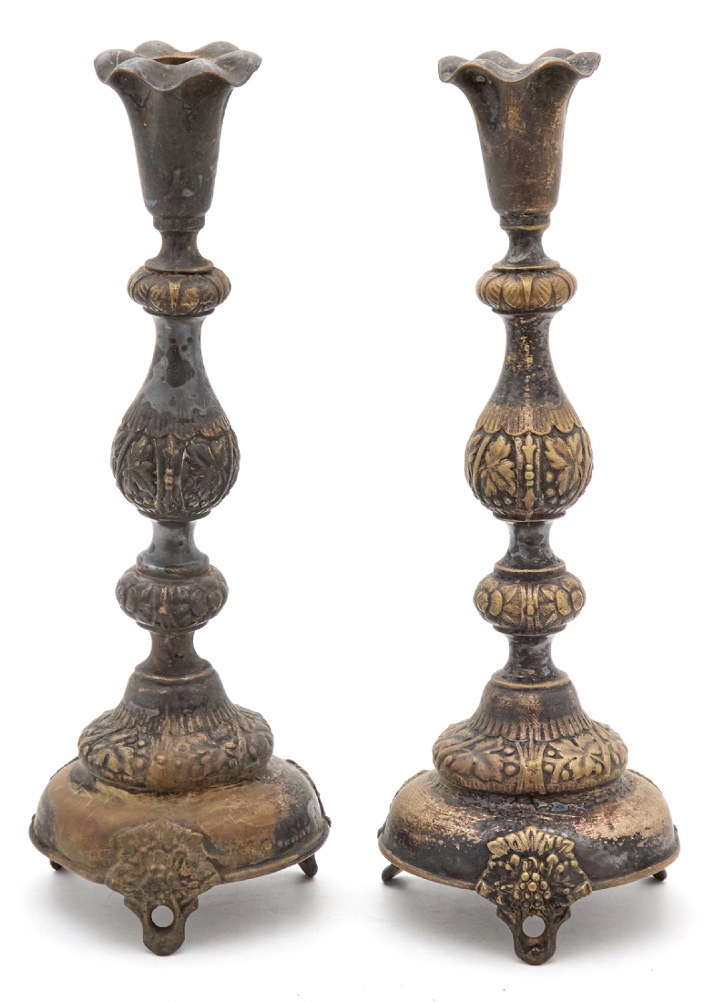 זוג פמוטים פולנים עתיקים מתוצרת: 'Warszawa Fraget', עשויים פליז מצופים כסף, חתום