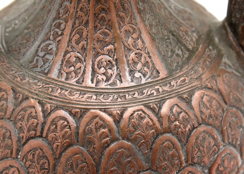 אפטבה עתיקה עשויה נחושת, שאריות ציפוי בדיל המאה ה־19