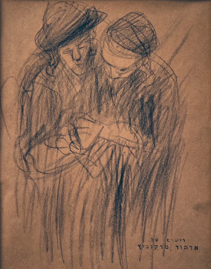 ארתור מרקוביץ, 'שני יהודים' - רישום פחם על נייר, חתום בחותמת עיזבון