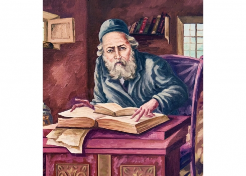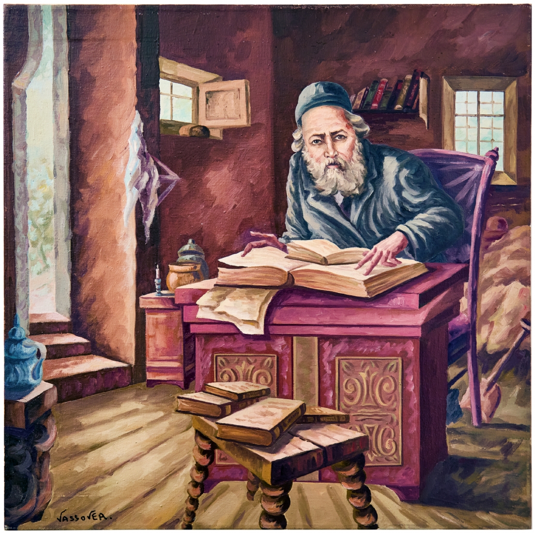 יעקוב ווסובר (Jacob Vassover) - 'רב לומד תורה', שמן על בד, חתום