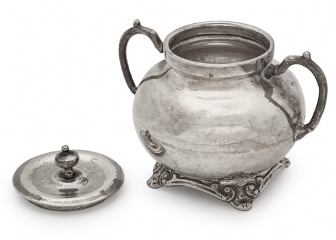 קנקן כסף אמריקאי ישן למים קרים מתוצרת: 'POOLE' עשוי כסף 'סטרלינג' (Sterling) כלי אמריקאי עתיק מפואר ומרשים, מתוצרת: 'BARBOUR SILVER CO', עשוי מתכת מצופה כסף אגרטל ישן ואיכותי במיוחד עשוי קריסטל מלוטש ביד ושפה עליונה עשויה כסף כלי עתיק למי ורדים (Rosewater Sprinkler) מהמאה ה-19 כפי הנראה הודי בסגנון מוגולי לוט של 7 מזלגות כסף גרמנים עתיקים, חתומים: '12', משקל כולל: 326 גרם קערת רחצה צרפתית עתיקה וגדולה סט כלי הגשה אנגלי עתיק (ויקטוריאני) מפואר מסוף המאה ה-19 להגשת קפה ותה כד פורצלן ארט נובו מעוטר כסף (Silver Overlay Porcelain) על רקע קובלט כחול כהה דקנטר גרמני ארט נובו עתיק, משנת 1900 בקירוב, מתוצרת: 'WMF' כלי כסף אנגלי, עשוי כסף סטרלינג, מתוצרת: 'Adie Brothers Ltd' בברמינגהם, חתום צלחת כסף פרסית עתיקה ויפה, חתומה לוט פרטי סכו"ם אנגלי ישן מתוצרת: 'Walker & Hall', עשויים מתכת מצופה כסף, חתומים כלי אנגלי ישן לרוטב (רוטביה), מתוצרת: 'Walker & Hall', עשוי מתכת מצופה כסף, חתום כלי הגשה ומכסה תואם, עשויים מתכת מצופים כסף, חתום כלי הגשה וכיבוד מרובע, עשוי מתכת מצופה כסף, חתום מיחם (סמובר) אמריקאי ישן ואיכותי מתוצרת 'Reed & Barton', חתום, עשוי מתכת מוכספת קופסא עתיקה מסוף המאה ה-19, עשויה מתכת  ומשובצת אבני חן טבעיות מגש ישן ויפה בסגנון עתיק, עשוי מתכת מצופה כסף, חתום, נתמך על ארבע רגליות כד רוסי עתיק, מתחילת המאה העשרים, עשוי גוף קריסטל מלוטש בעבודת יד מיחם אנגלי עתיק (ויקטוריאני) מסוף המאה ה-19, עשוי פיוטר מצופה כסף סט של שלושה כלי כסף הודים (קשמיריים) עתיקים מהמאה ה-19 סט אנגלי עתיק (ויקטוריאני) להגשת דגים כלי מוכסף להגשה וכיבוד קנקן ארט דקו ישן לשתייה קרה קנקן מתוצרת: 'Mappin & Webb' שני כלי כסף עתיקים כף הגשה אוסטרית עתיקה כלי הגשה ישן, עשוי נחושת מצופה כסף כלי מוכסף ומעמד תואם סלסלה עתיקה עשויה פליז מצופה כסף