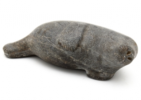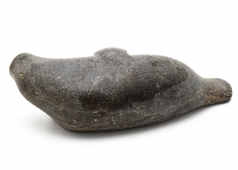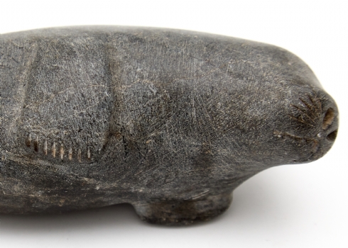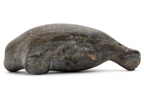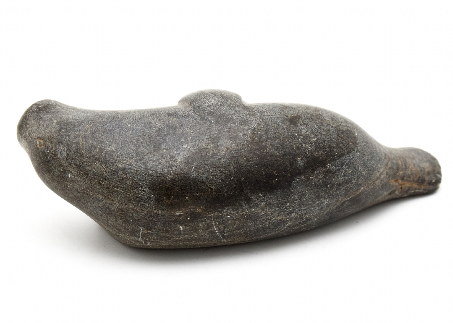 פסלון דקורטיבי מגולף ביד בדמות כלב ים, חתום בתחתית