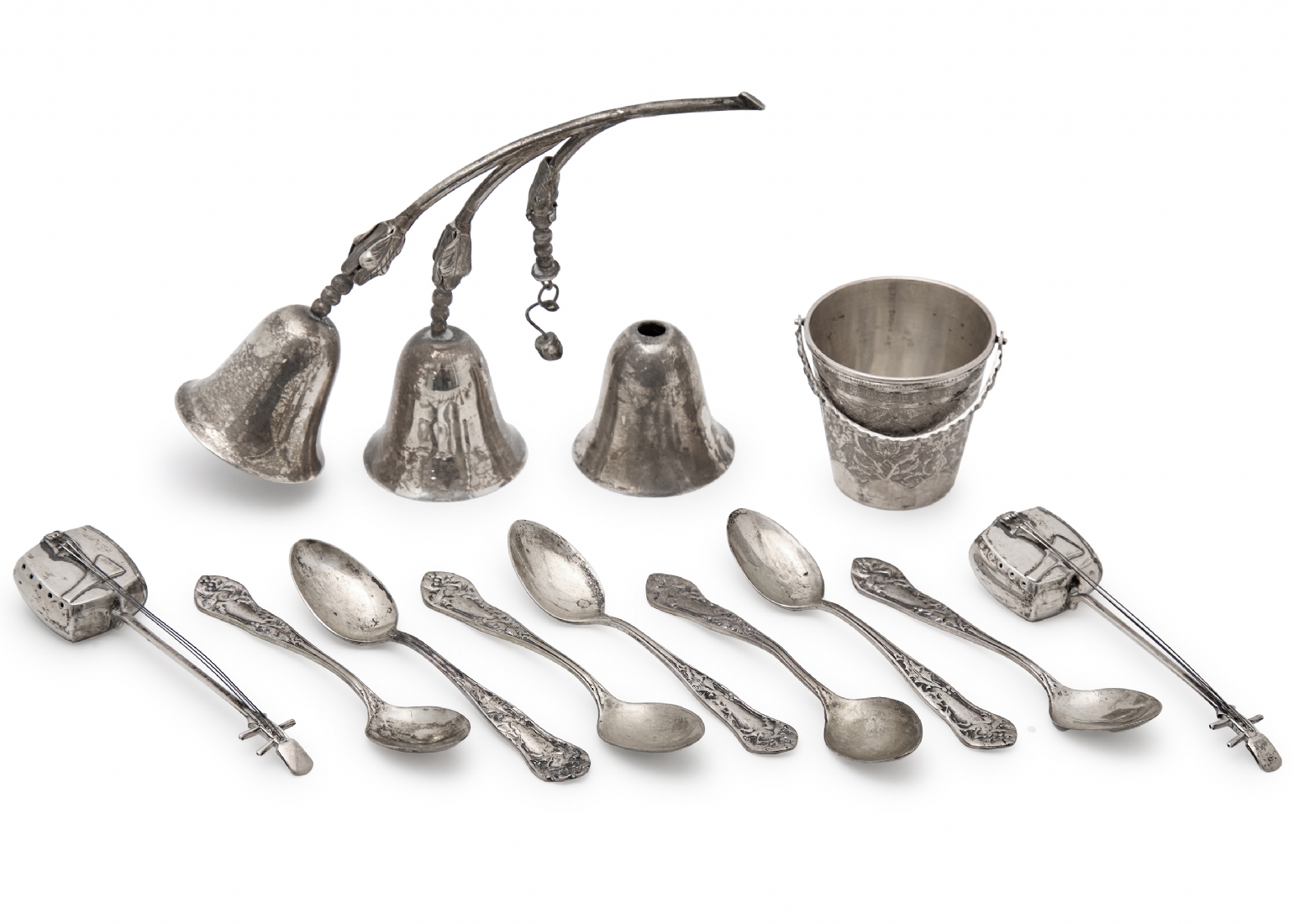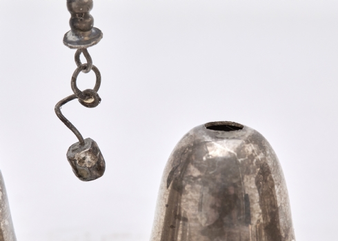 פעמון אחד מנותק, משקל כולל: 317 גרם סה"כ אורך הפעמונים עם הידית אחיזה: 18 ס"מ גובה הדלי הפרסי המעוטר כעולל הידית: 8 ס"מ