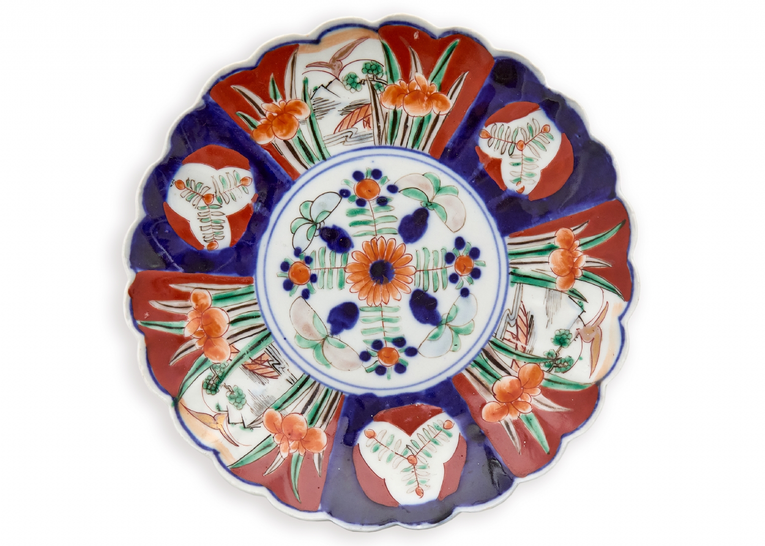 צלחת פורצלן יפנית 'אימרי' 'Imari' עתיקה - דגם פרחוני קלאסי