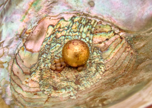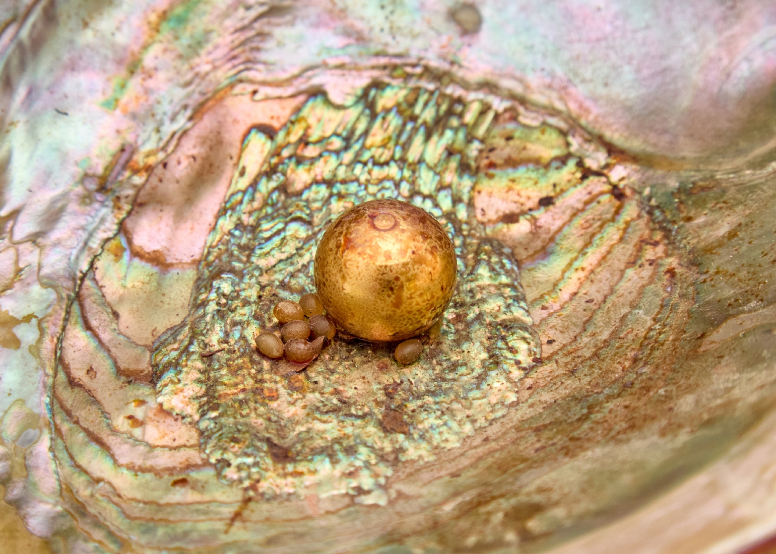 קערה אליפטית עשויה צדף טבעי (אם־הפנינה)