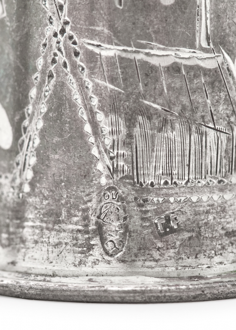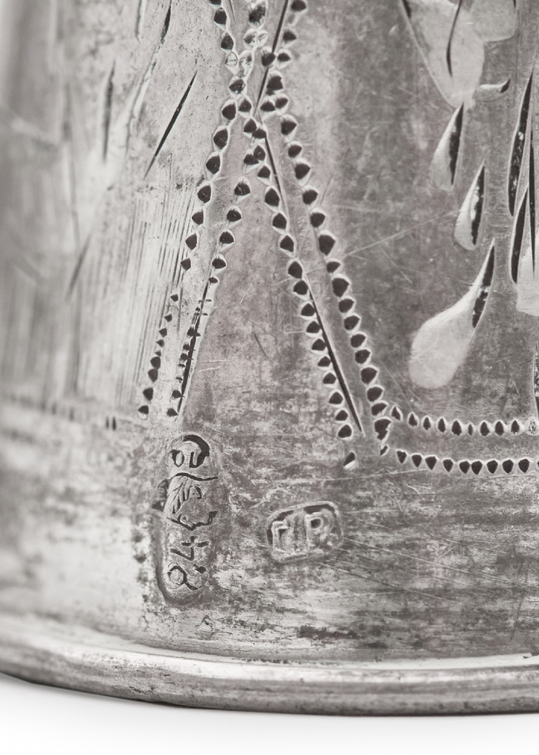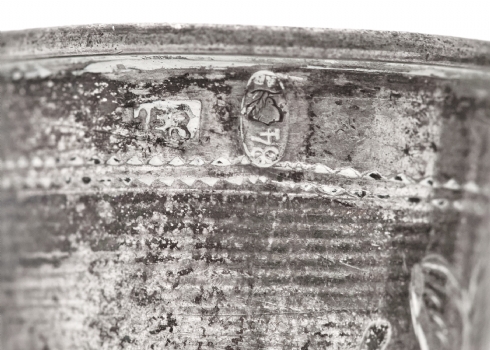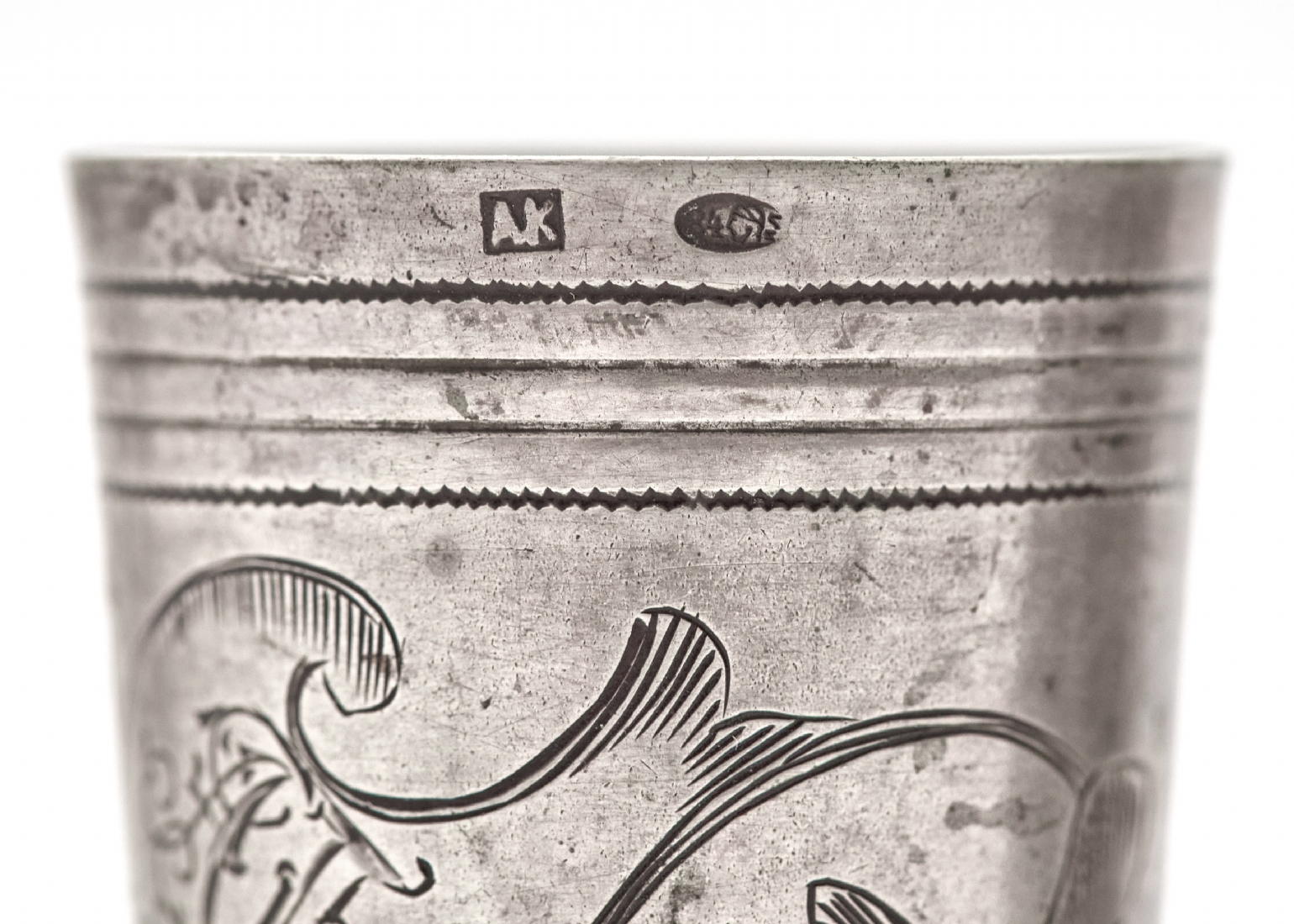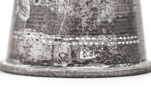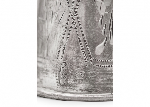 שישה גביעים וכוסות כסף רוסים לקידוש, חתומים יצרנים ודגמים שונים
