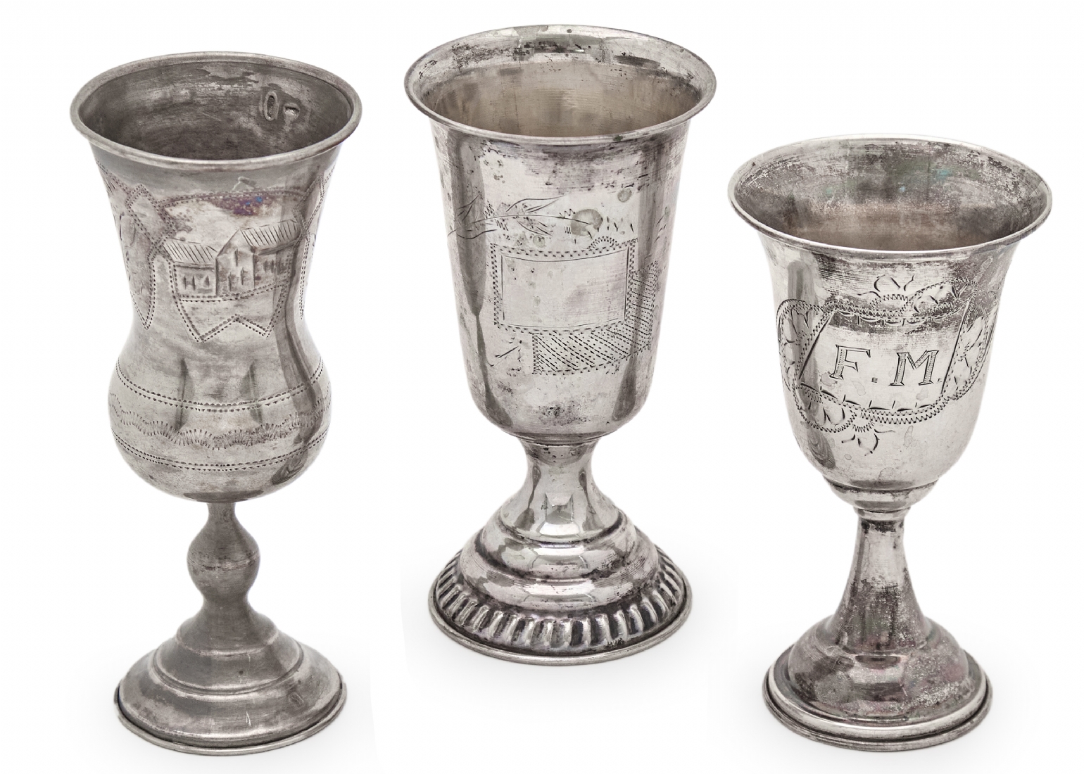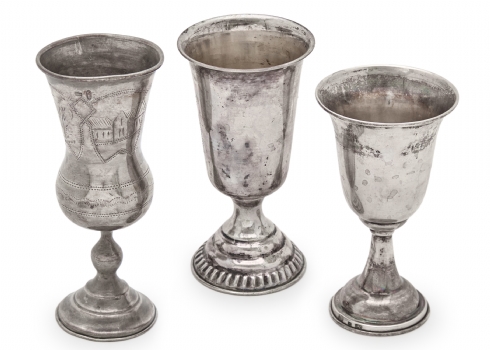 שלושה גביעי כסף לקידוש יצרנים ודגמים שונים חתומים
