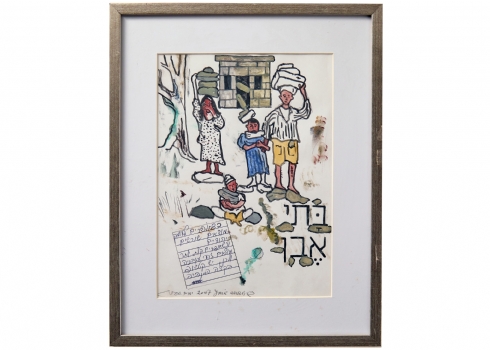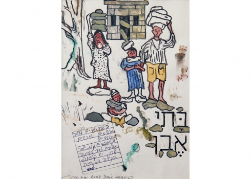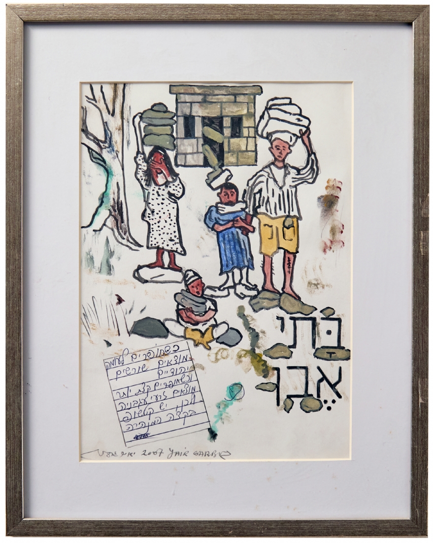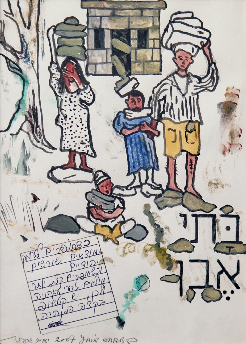יאיר גרבוז - 'בתי אבן', טוש ואקוורל על נייר, חתום ומתוארך 2007