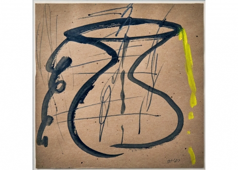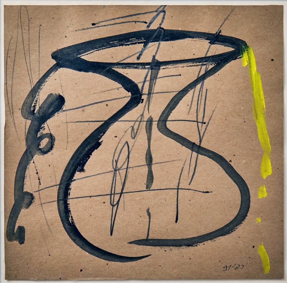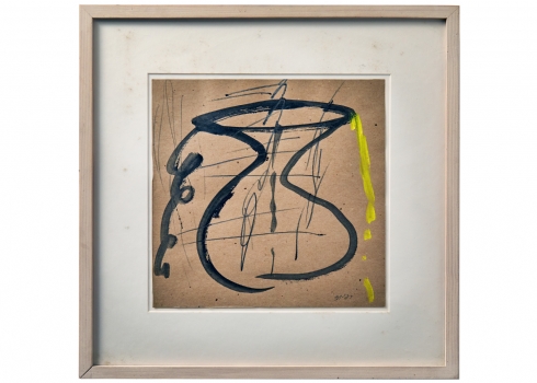 רפי לביא (Raffi Lavie) 'כד שחור' - גואש על נייר חתום ומתוארך: 1991