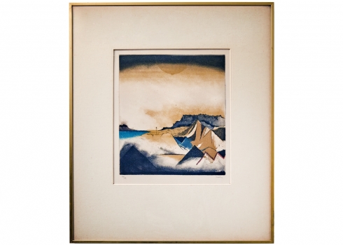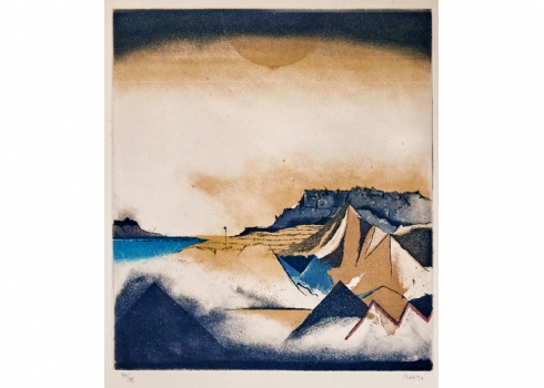 טוביה בארי (Beeri) - 'נוף בנגב' - ליטוגרפיה על נייר חתומה בעפרון