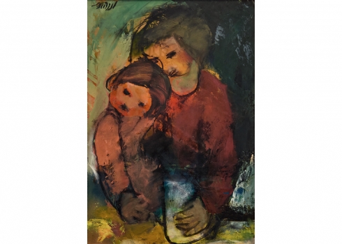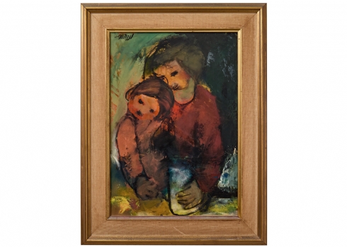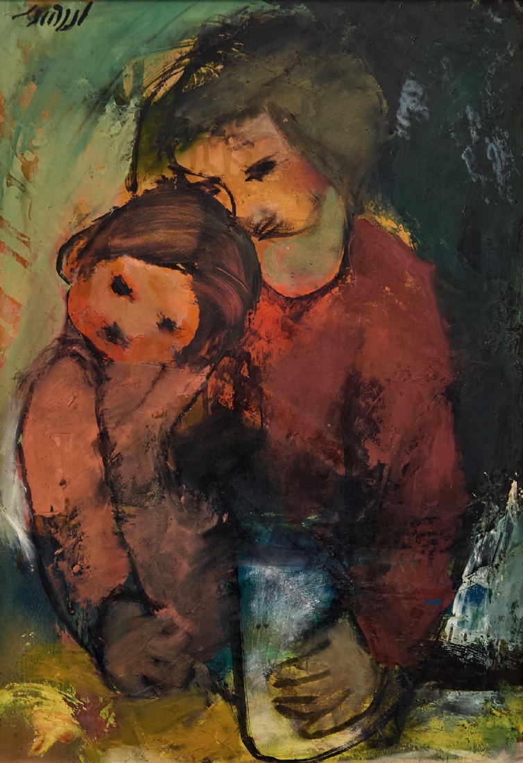 אריה וכנהאוזר (Arie Wachenhauser) - 'אם וילד' - שמן על לוח, חתום