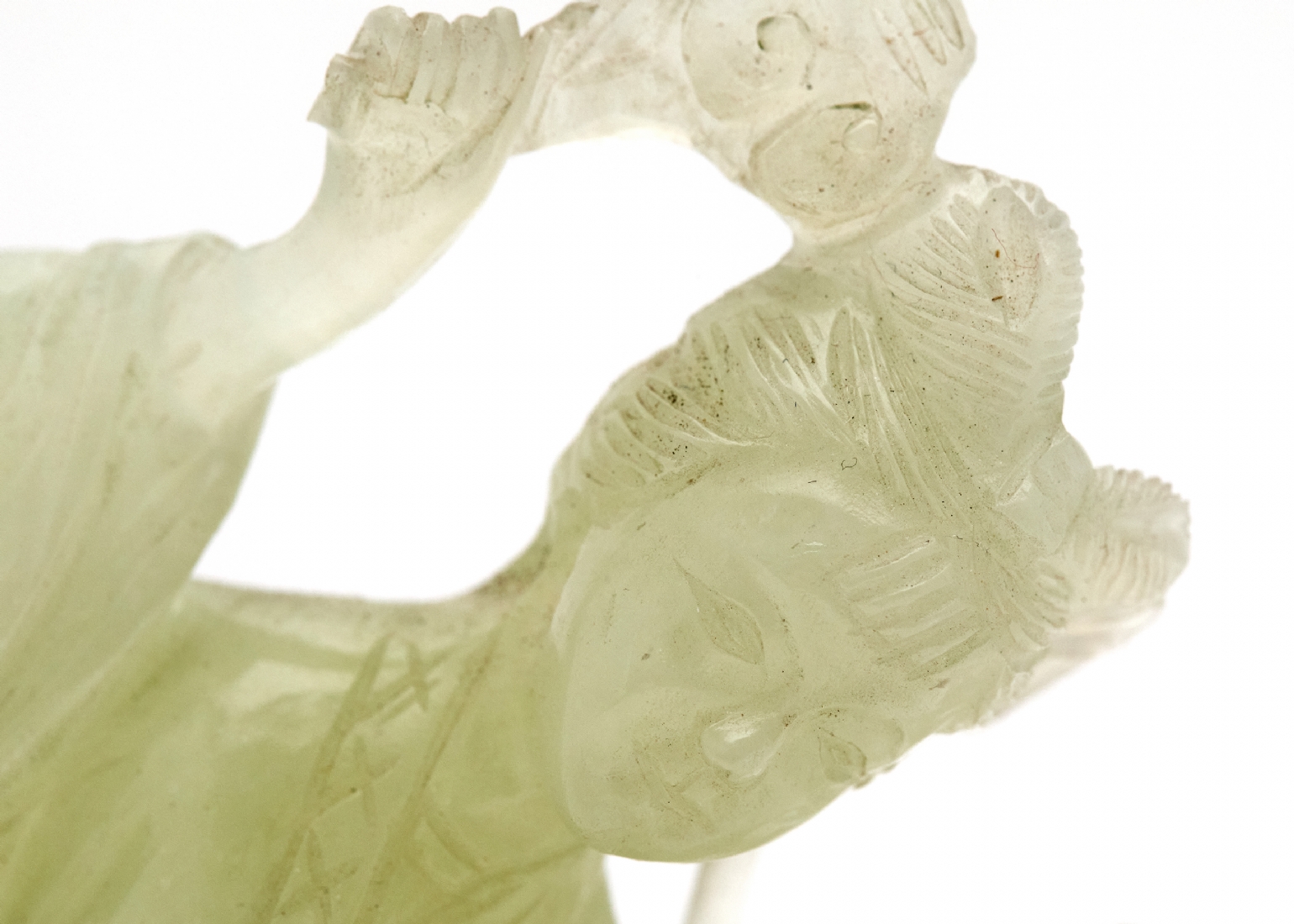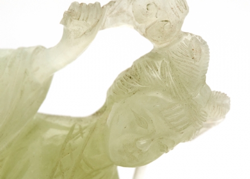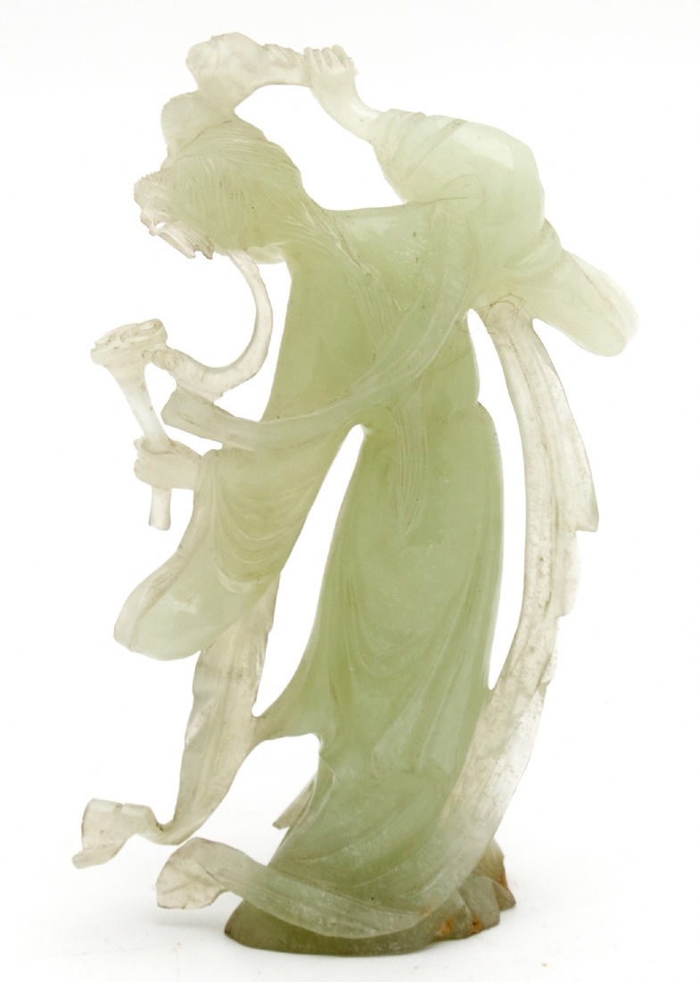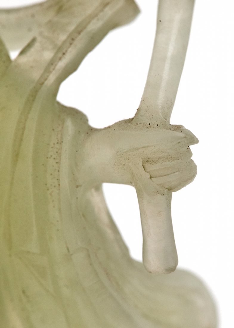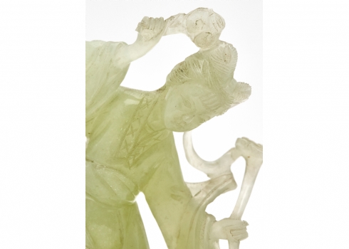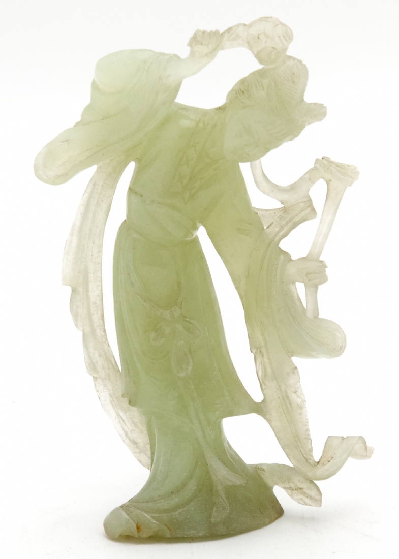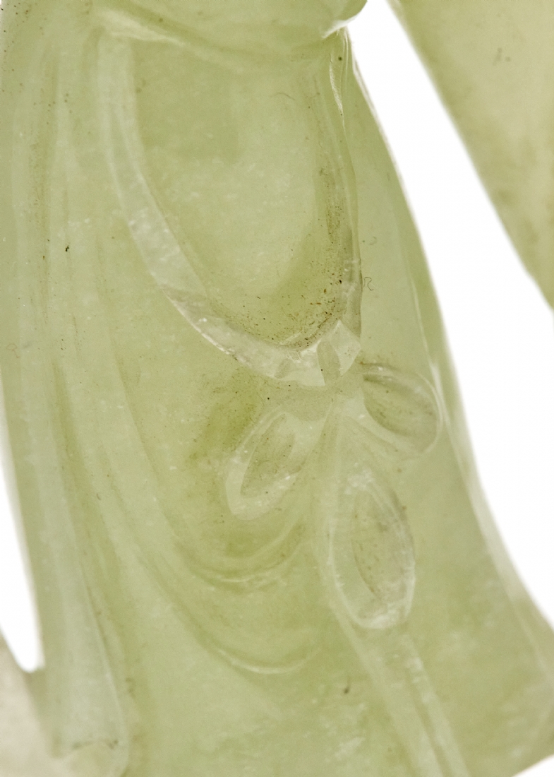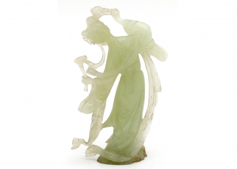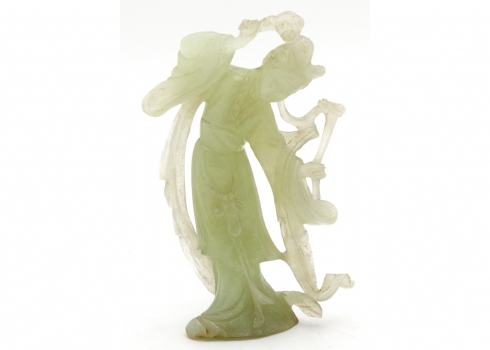 פסל אלה סינית מגולף מאבן 'סרפנטיין' 'Serpentine' בגוון ירקרק חלבי ועדין