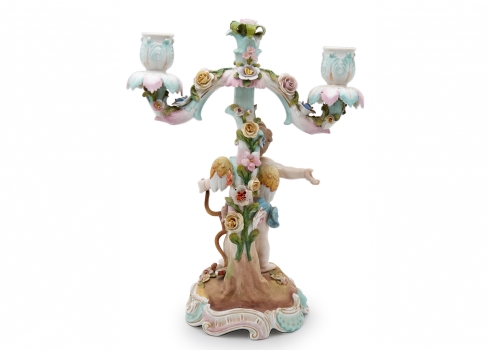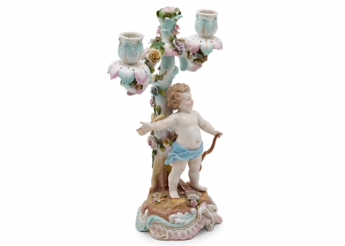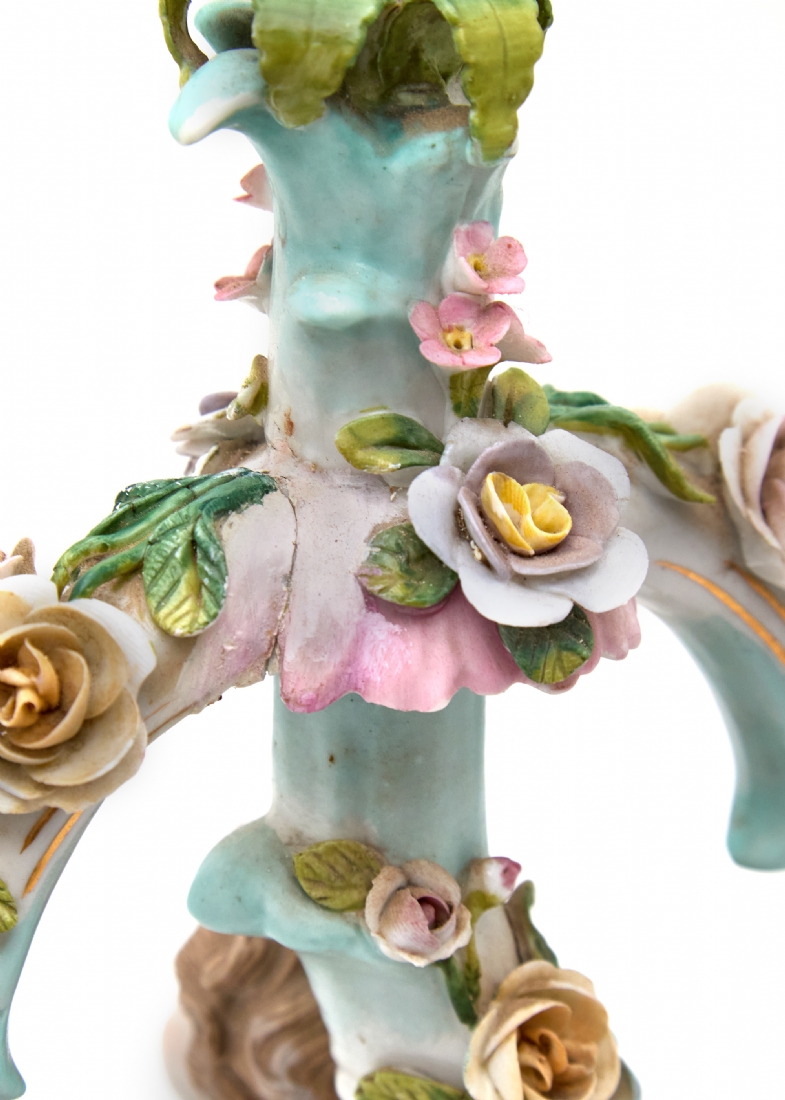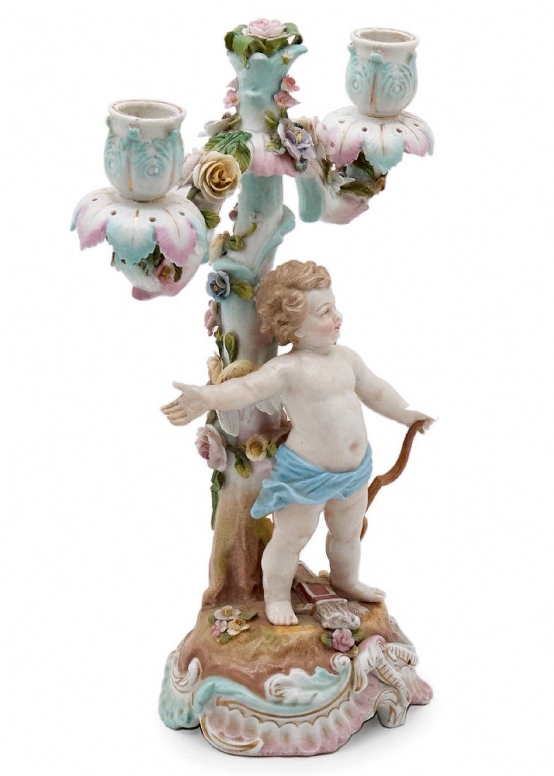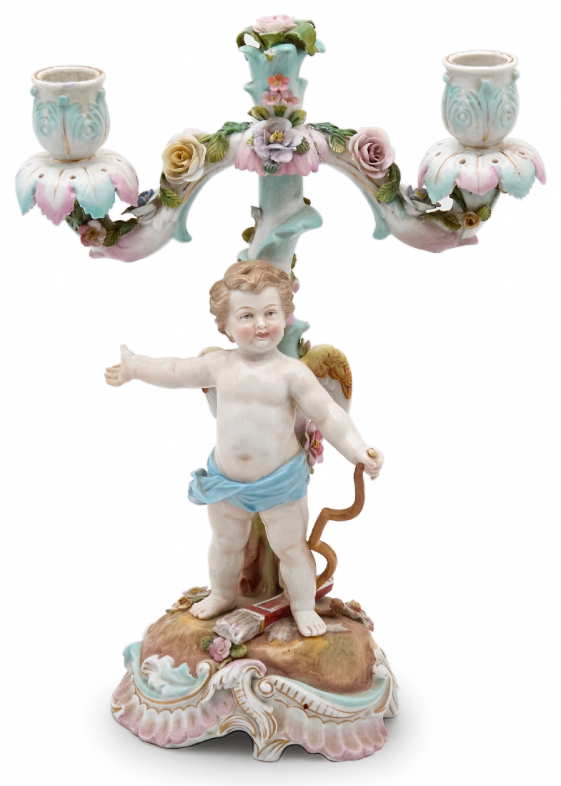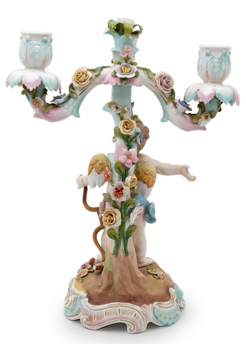 פמוט שולחני גרמני עתיק מסוף המאה ה-19, יוצר באזור דרזדן בסגנון מייסן