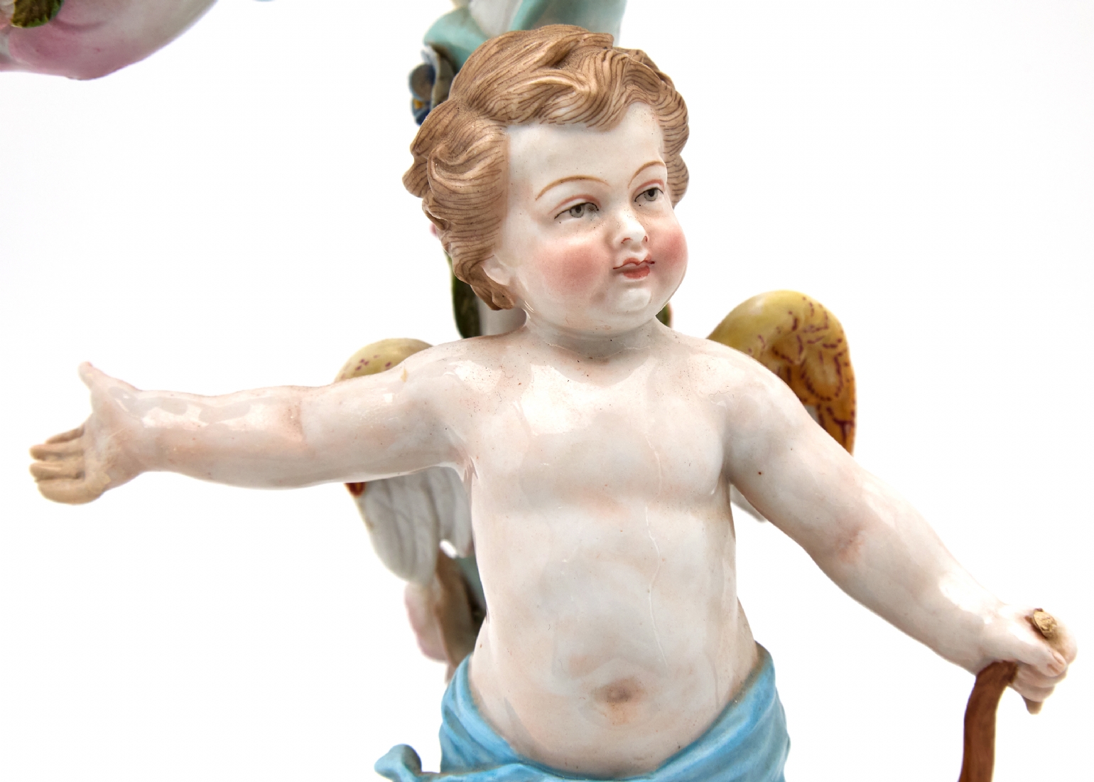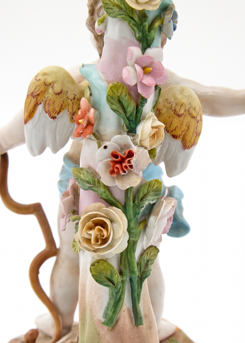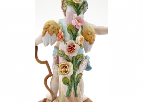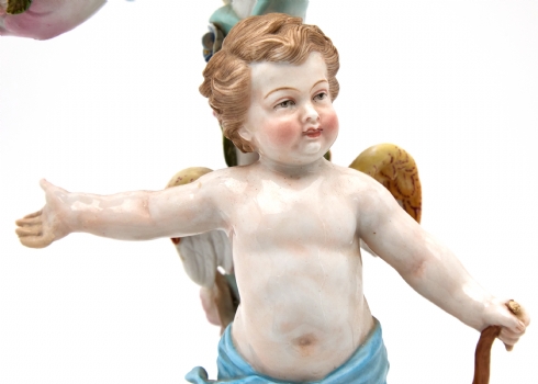 חתום, מעוטר בדמות מלאך, הפרחים מפוסלים ביד, צביעת יד באמייל פוליכרום ובזהב