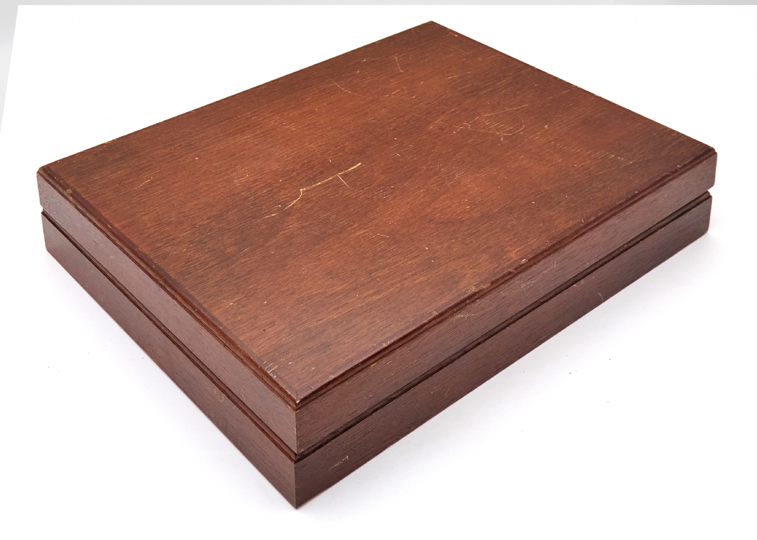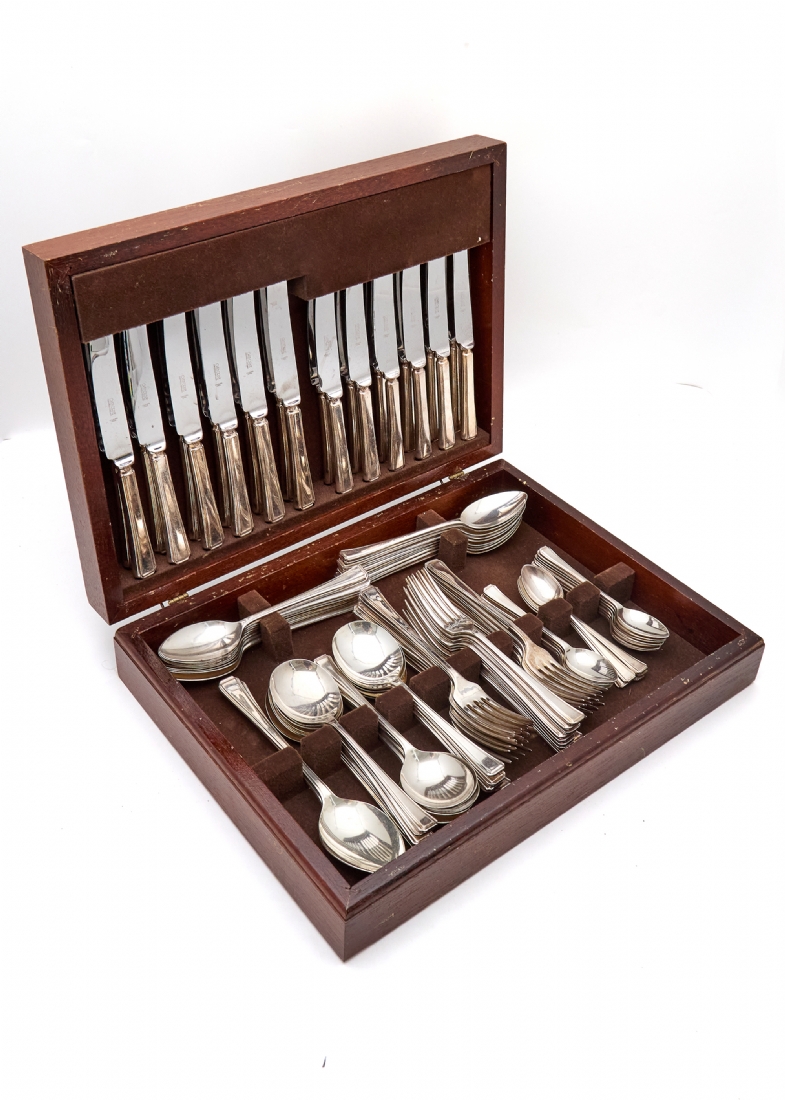 חלקי סט אנגלי גדול בקופסאת עץ, עשוי מתכת מצופה כסף תוצרת 'Osborne Sheffield'
