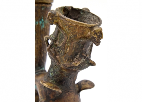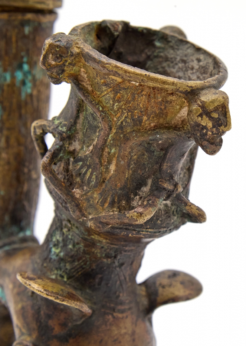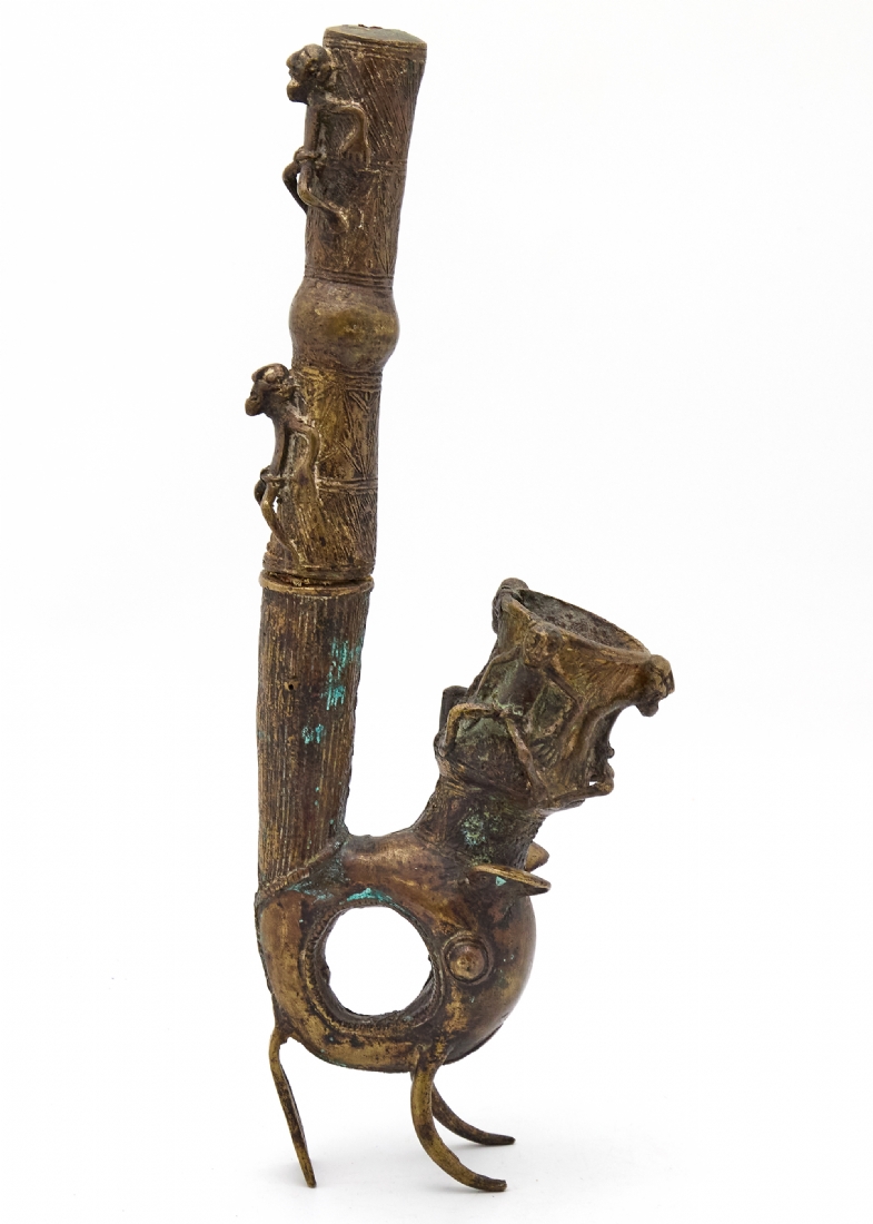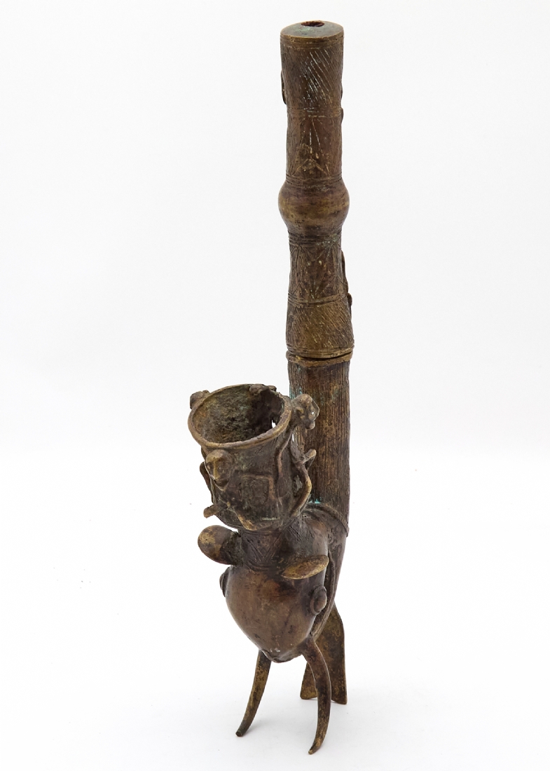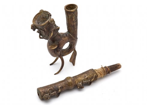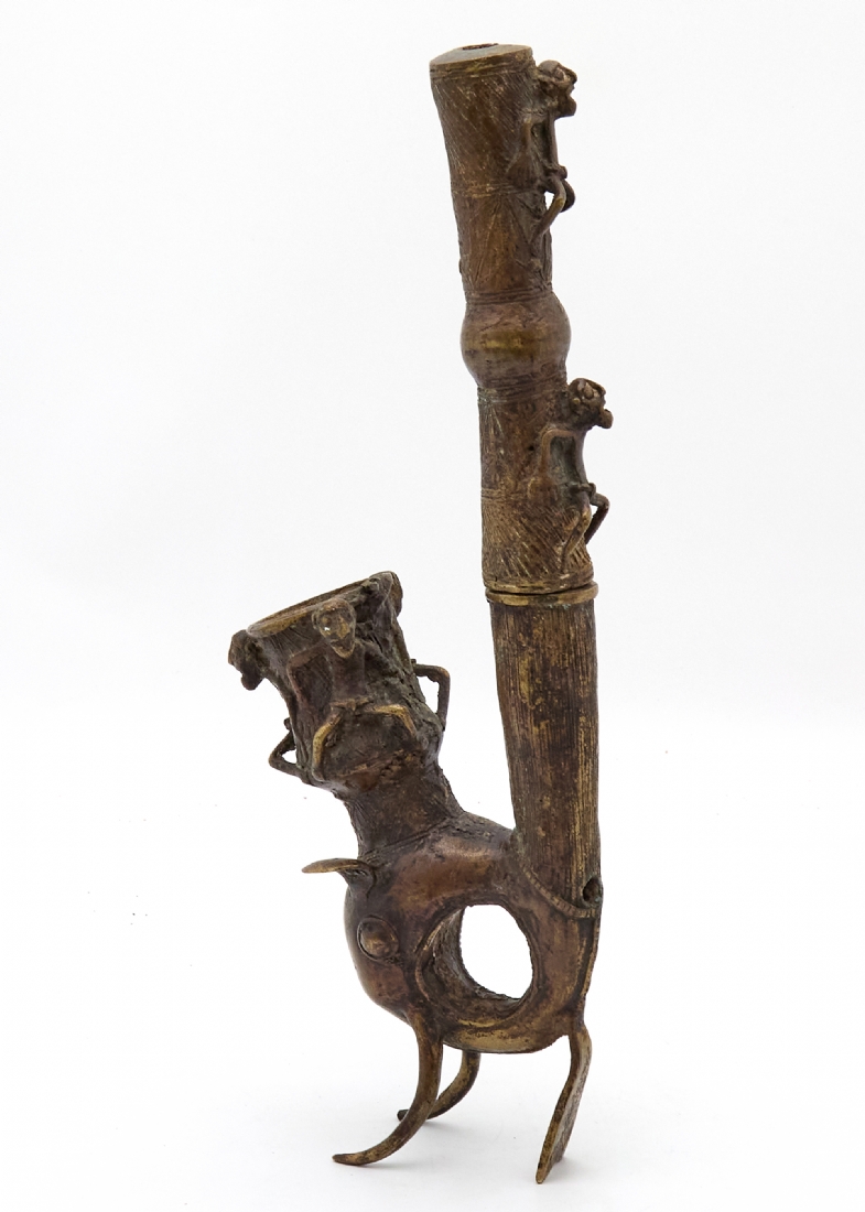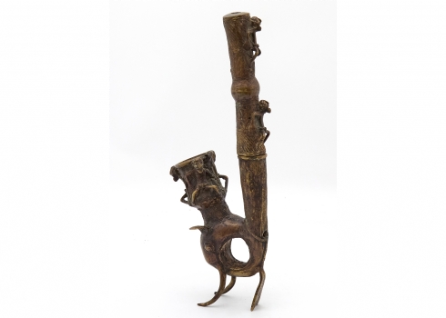 קישוט אפריקאי 'עבודת בנין' עשוי משני חלקים מעוצב בצורת מקטרת טקסית