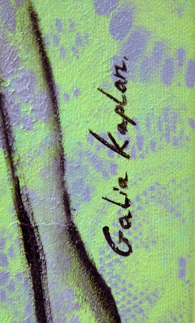 גליה קפלן - 'נערה בירוק' שמן על בד, חתום