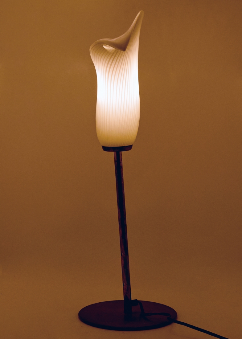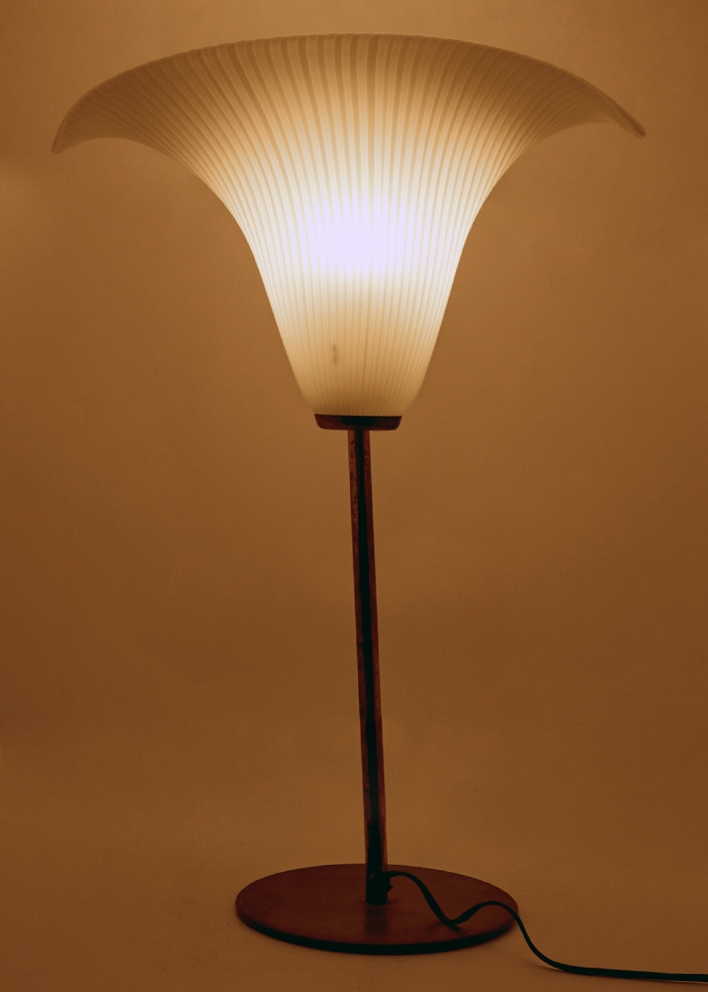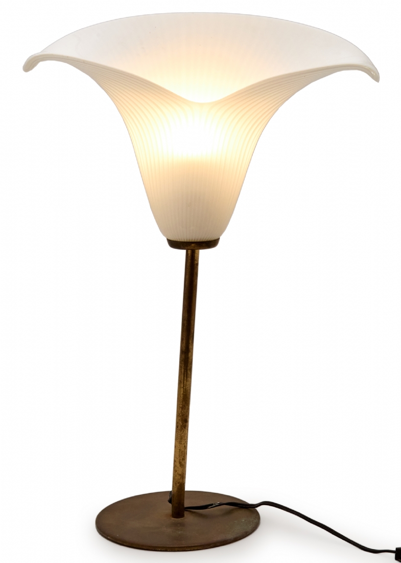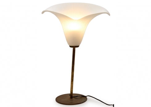 מנורת שולחן וינטג' בסגנון 'Calla Lily'- אהיל זכוכית על גבעול פליז