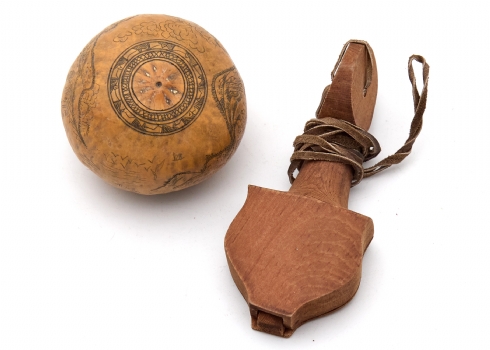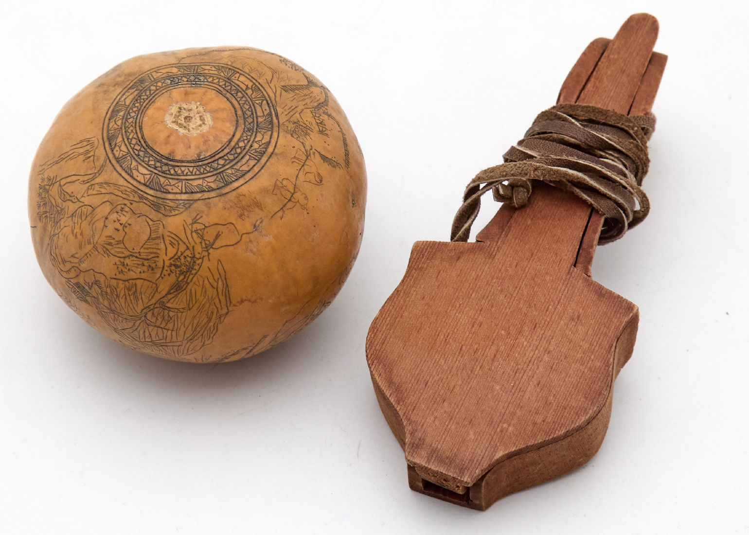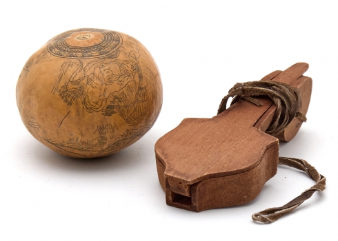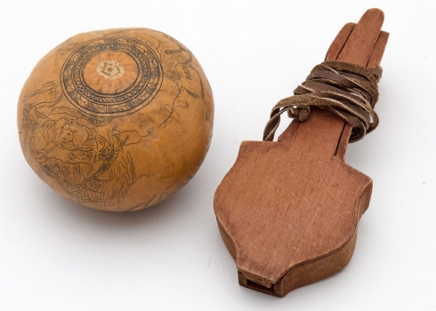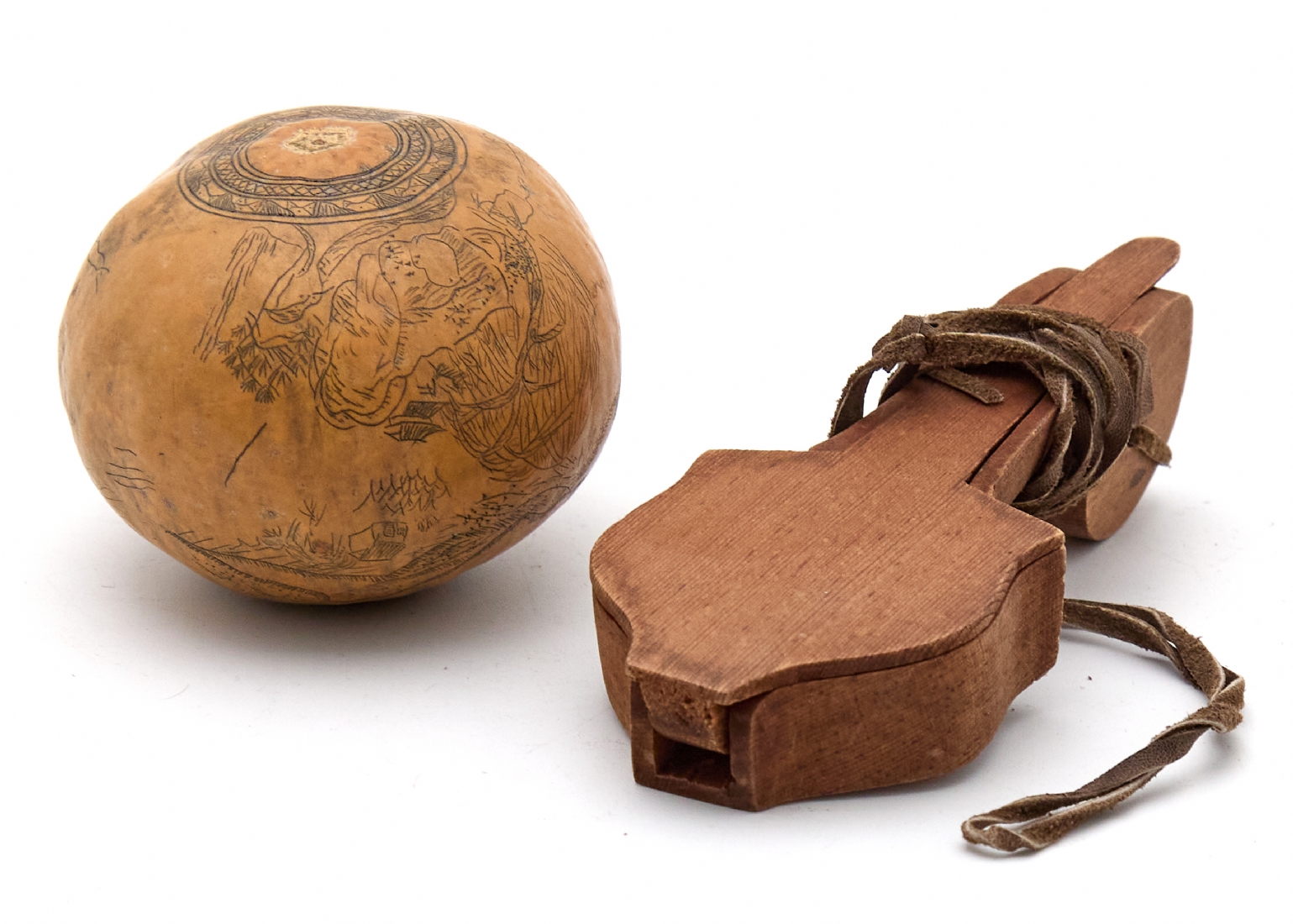 זוג כלי נגינה - מולטקה יאקוטית ודלעת מגולפת סינית
